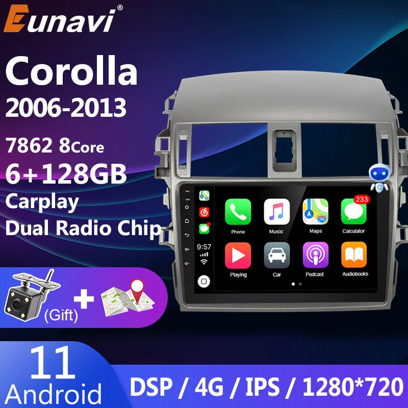 Автомагнитола Eunavi 7862 4G IPS 2 Din Android 11 для Toyota Corolla 2007 2008 2009 2011 мультимедийный видеоплеер 2 Din DVD GPS 8Core