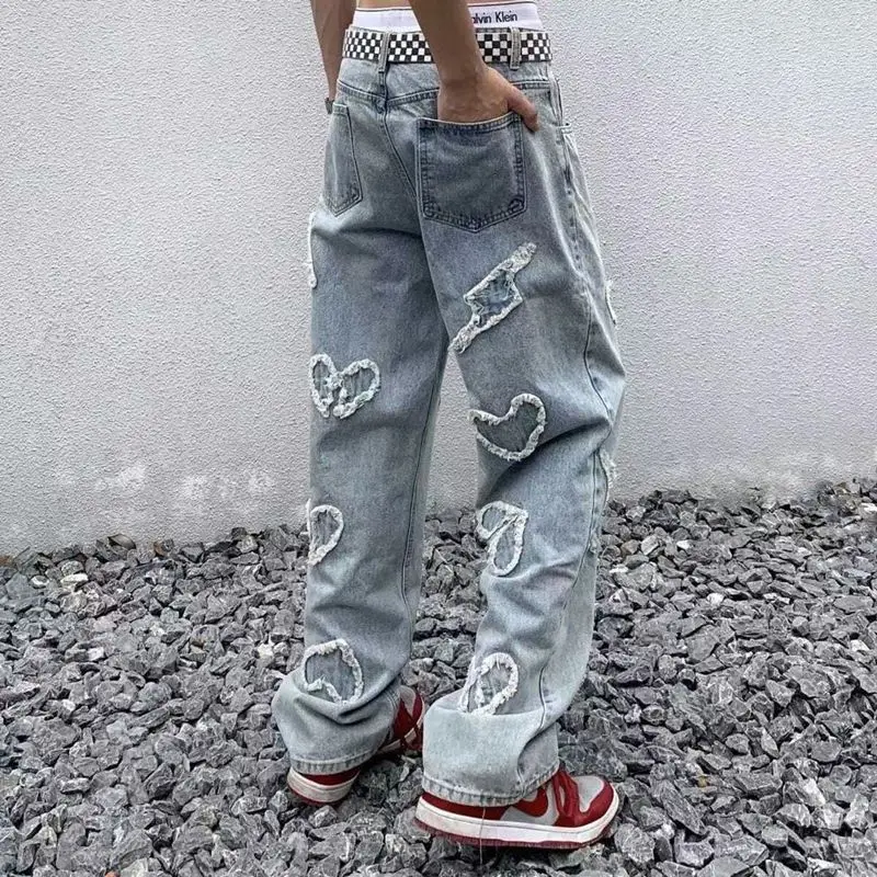 Джинсы с широкими штанинами мужские, прямые свободные брюки с больш...