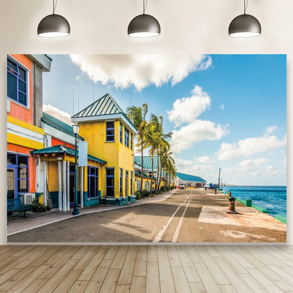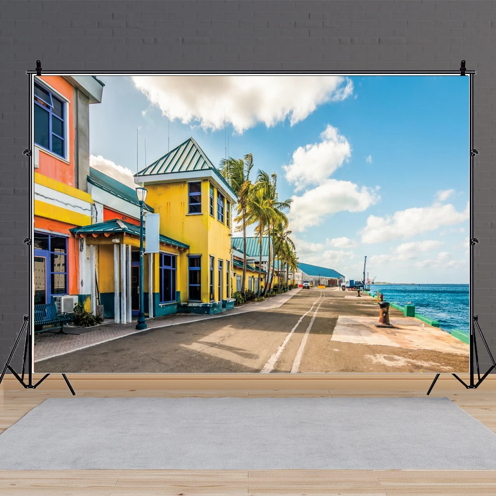 Фон для портретной фотосъемки с изображением красочных домов в морском городе