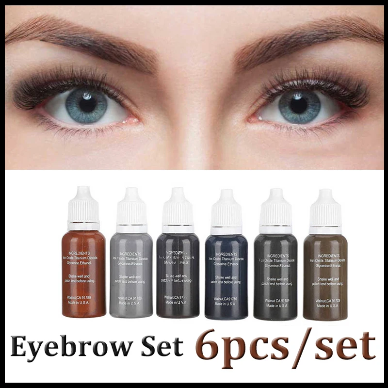 6 шт.компл. чернила для татуировок, устройство для перманентного макияжа, пигмент для микроблейдинга, бровей, губ, подводка для макияжа