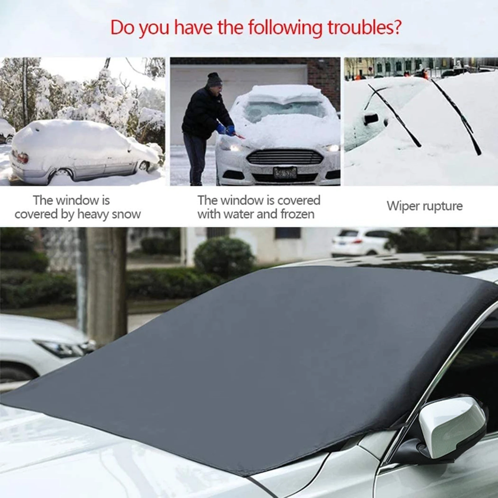 3. 6 мощных магнитов на верхней стороне, чтобы сохранить внешнее ветровое стекло снежного покрова на месте даже в ветреные дни, и два ветрозащитные ремни с каждой стороны, чтобы помочь надежно прикрепить эту крышку. Даже самые сильные ветры не подходят для этого лобового стекла снежные Чехлы магнитный держатель!