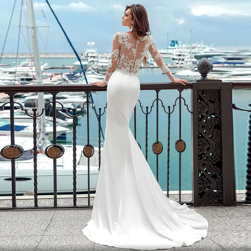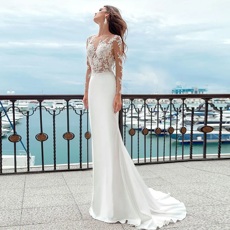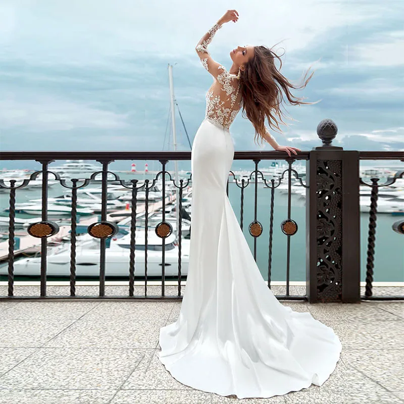 Смайлик Русалка свадебное платье атласное с длинным рукавом Vestido...