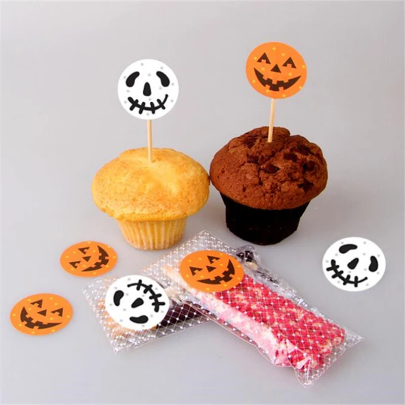 Украшение на Хэллоуин, круглая наклейка сделай сам, печенье, подарок на Хэллоуин, упаковка для конфет, печенья, милая запечатывающая тыква, Мультяшные наклейки