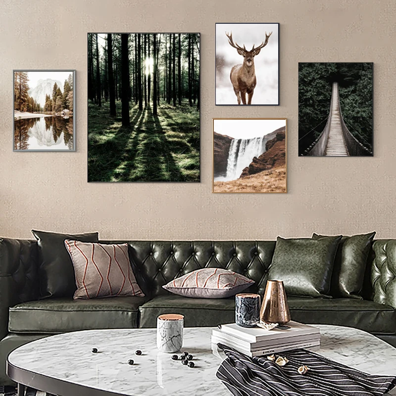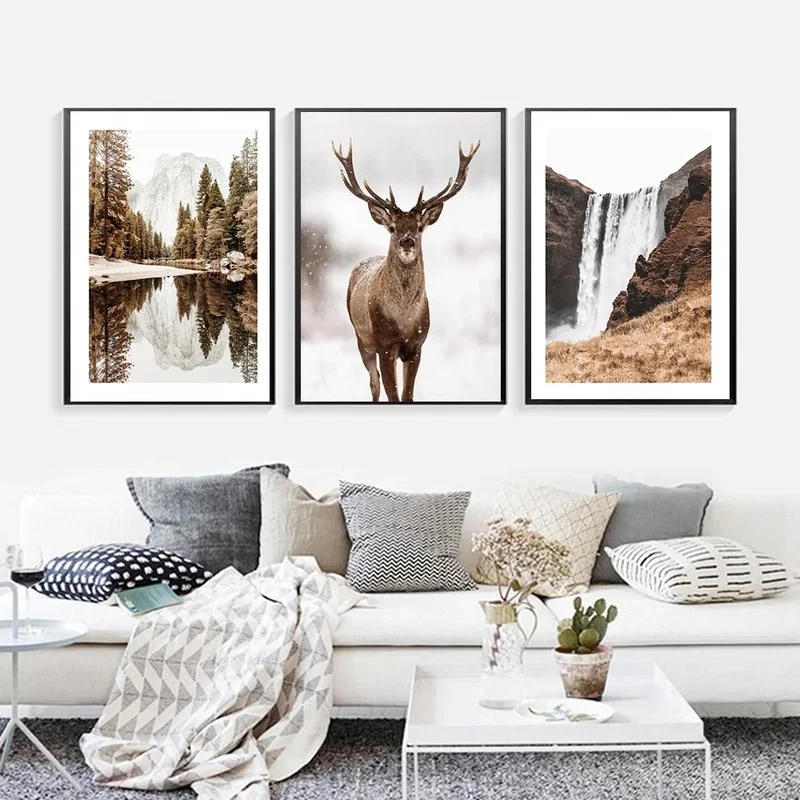 Пейзаж, ландшафт, постер с животными, фотосессия, природа, снег, озеро, дерево, скандинавский постер, настенное искусство, Картина на холсте, украшение для дома