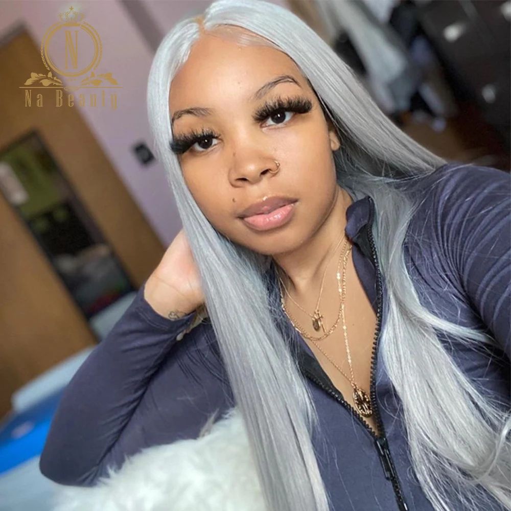 Парик из натуральных седых волос, 613 Hd, прозрачный, прямой, с отбеленными узлами, 613