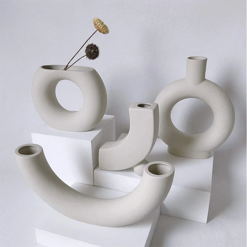 Креативные керамические вазы в скандинавском стиле Ins, простое Ретро украшение для комнаты, аксессуары для интерьера дома, белый керамический цветочный горшок в деревенском стиле