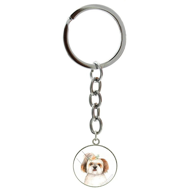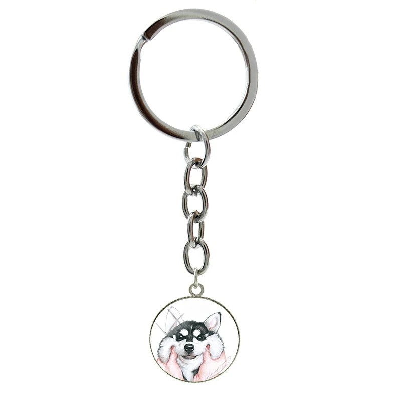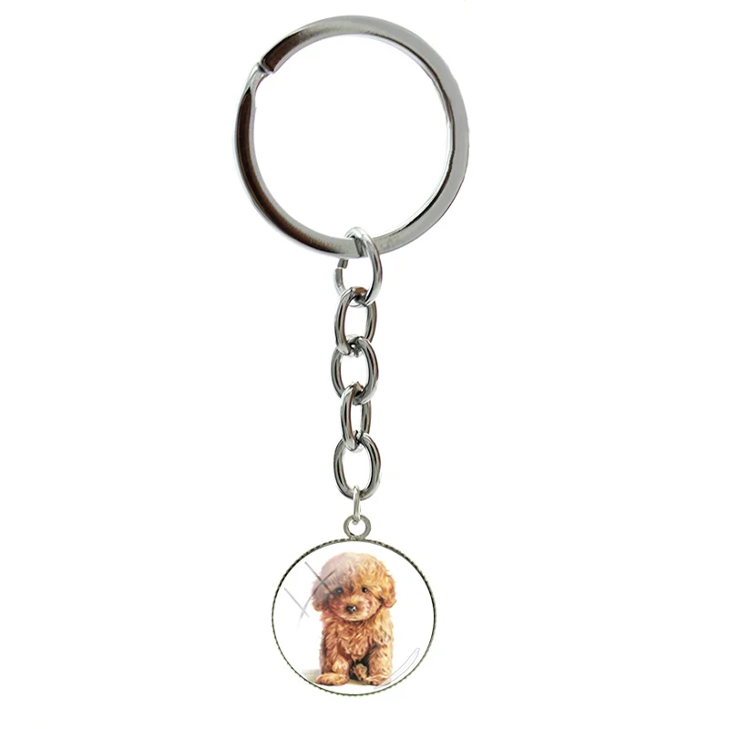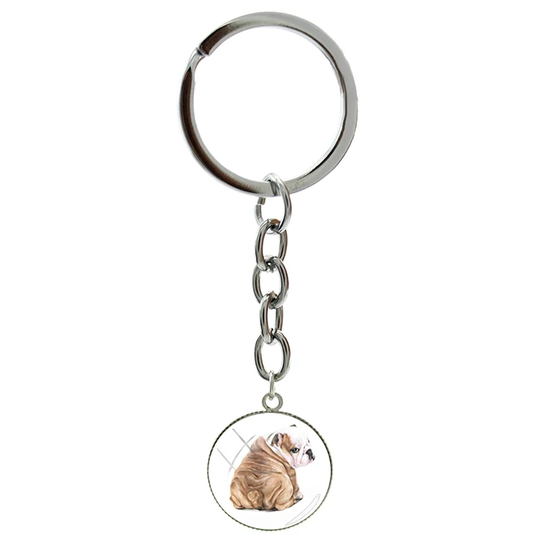 Классический брелок для ключей с изображением животных из мультфильма собаки 20 мм стеклянные кабошоны аксессуары кольца для ключей ювелирные изделия для помолвки с супругом