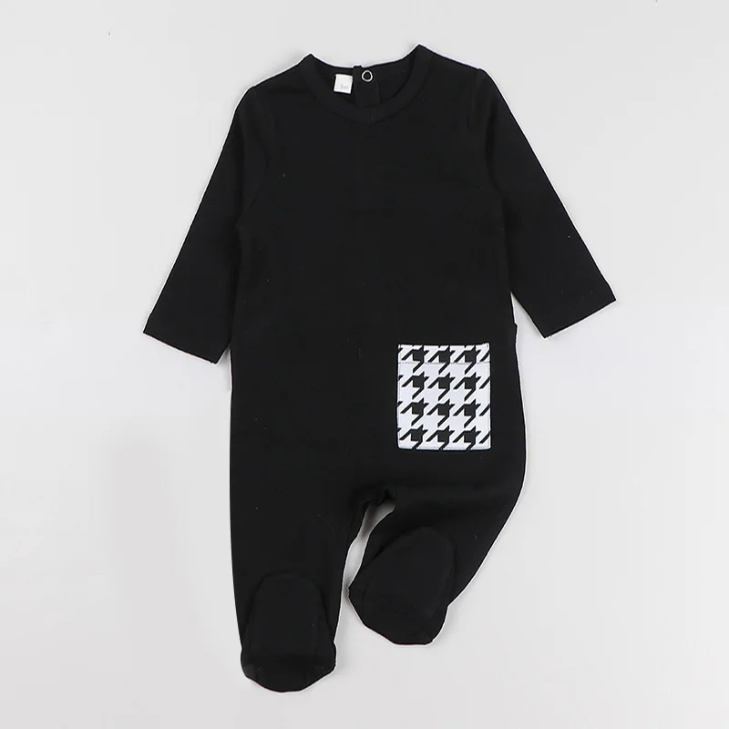 Хлопковое боди для малышей, пижамы, Детская одежда детская одежда с длинными рукавами черный комбинезон для маленьких мальчиков и девочек одежда с карманами пижамы для ног
