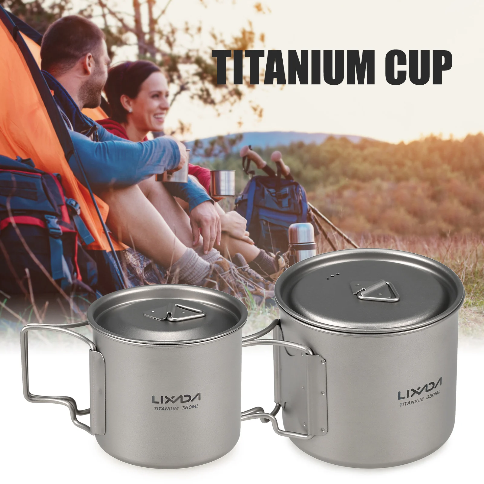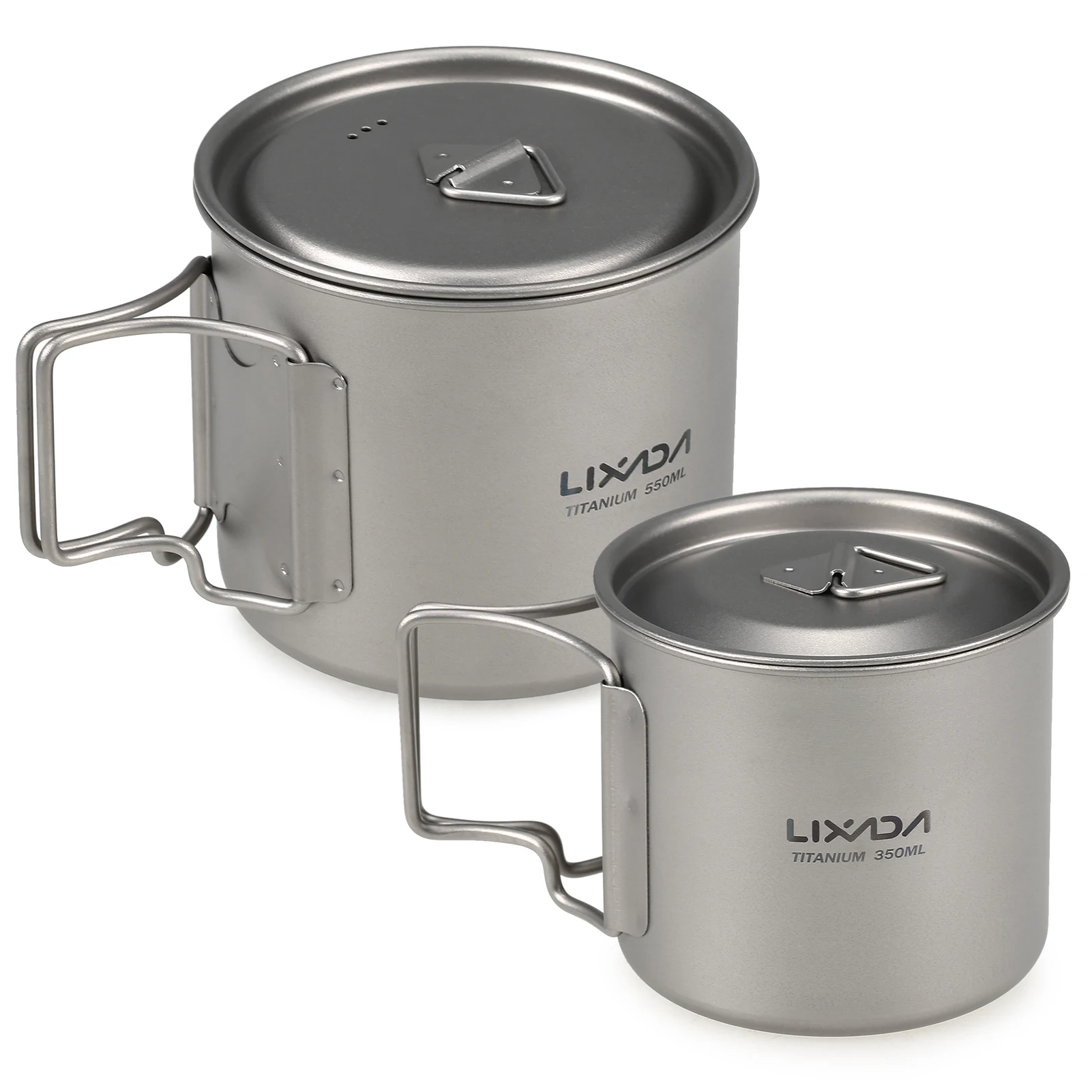 Ультралегкая титановая чашка Lixada, комплект из 2 портативных чашек для улицы, 550 мл, 350 мл, чашка для воды для кемпинга и пикника, Кружка со складной ручкой