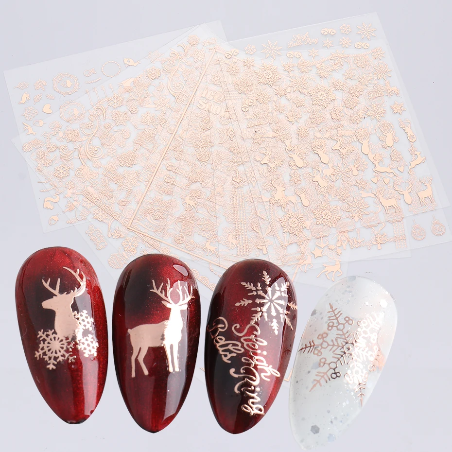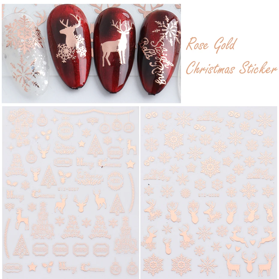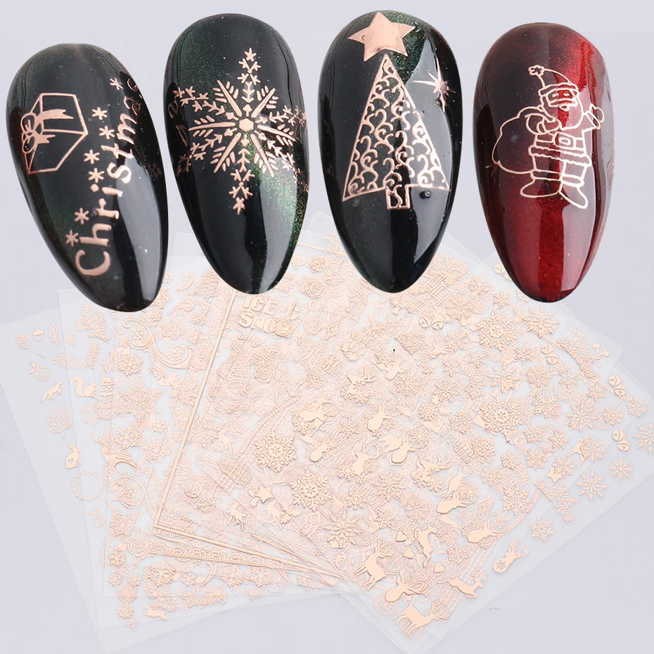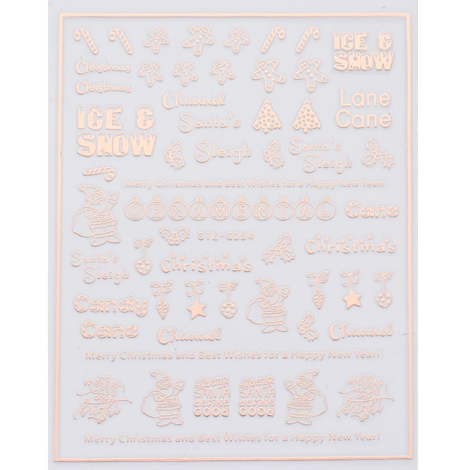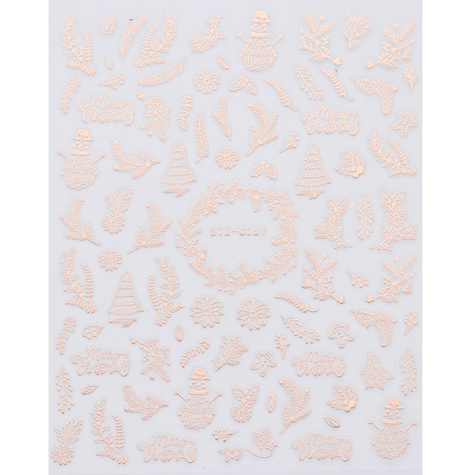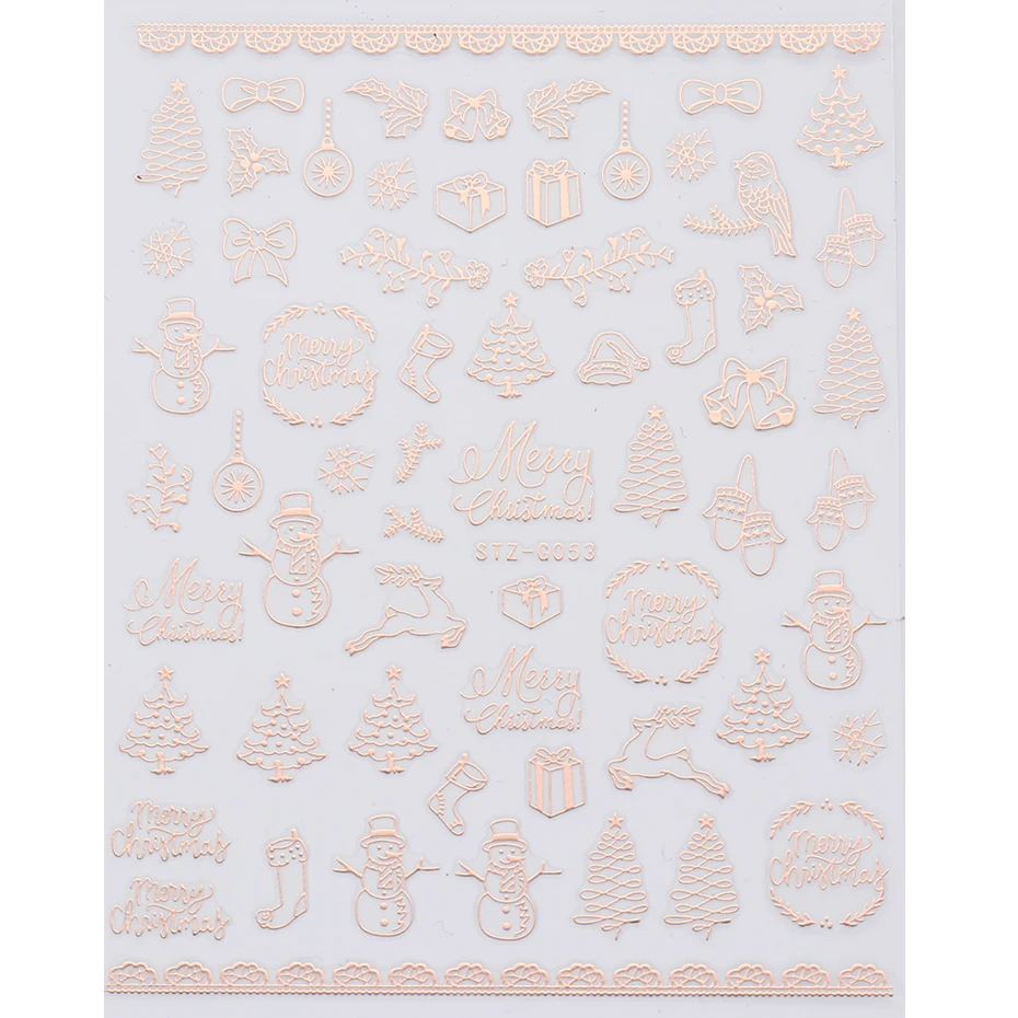 Товар: 3D розовое золото, Рождественский дизайн, наклейки для ногтей, кружева, Рождественская елка, снег, надпись, художественные наклейки, слайдеры, маникюрные декорации