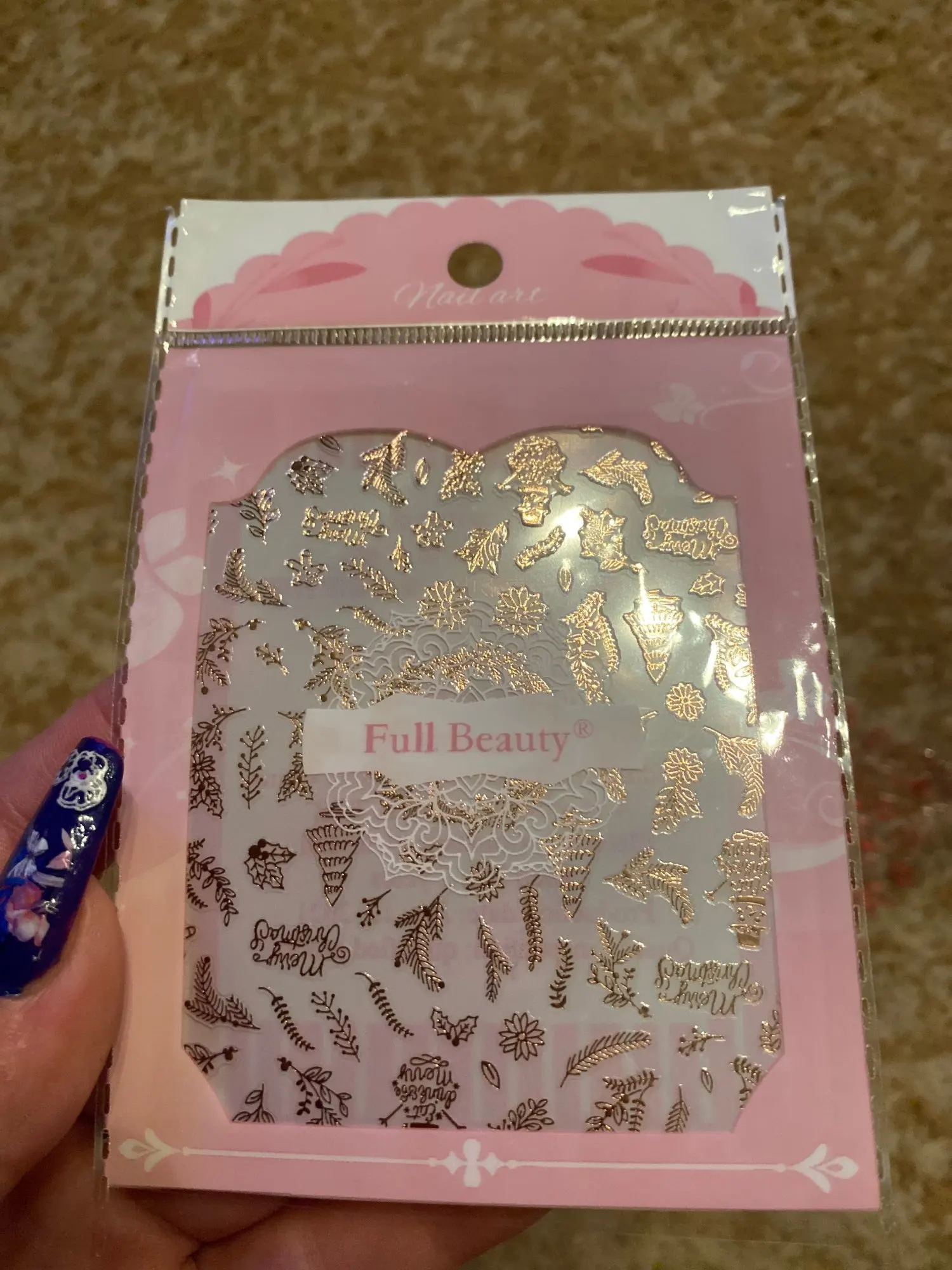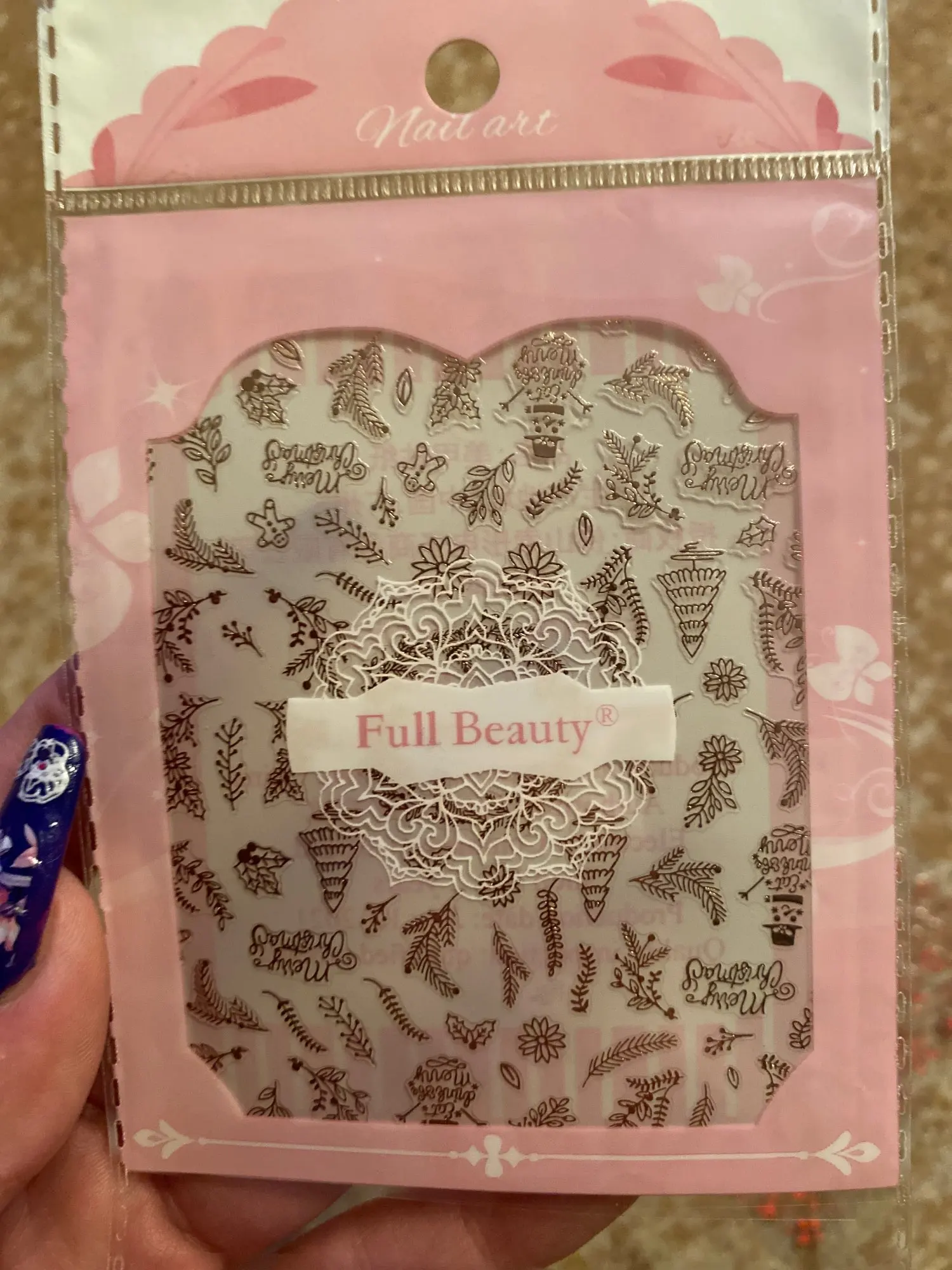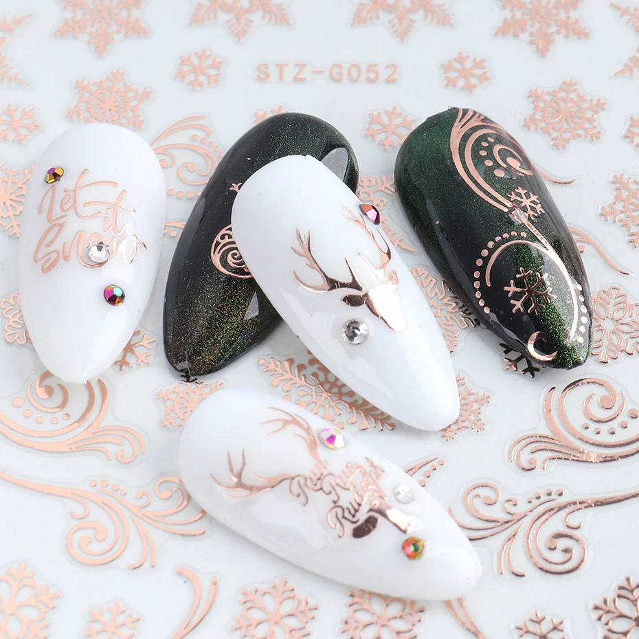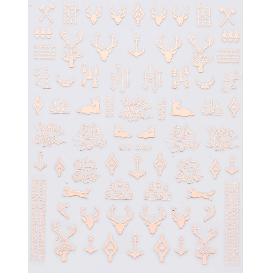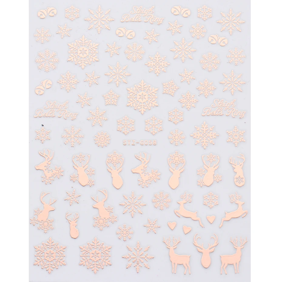Товар: 3D розовое золото, Рождественский дизайн, наклейки для ногтей, кружева, Рождественская елка, снег, надпись, художественные наклейки, слайдеры, маникюрные декорации