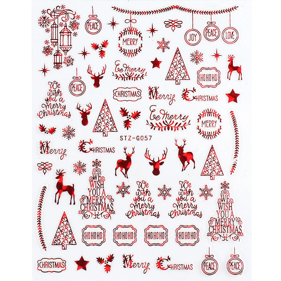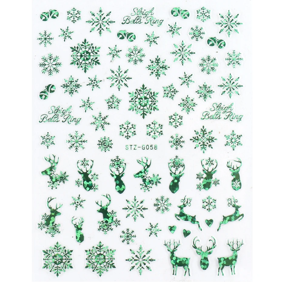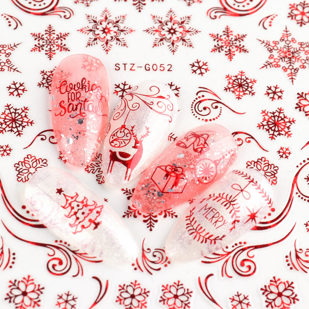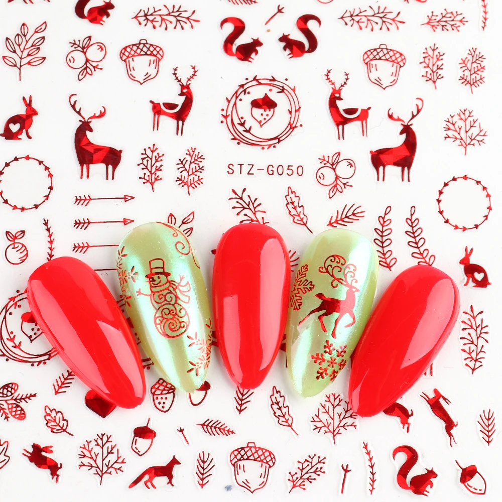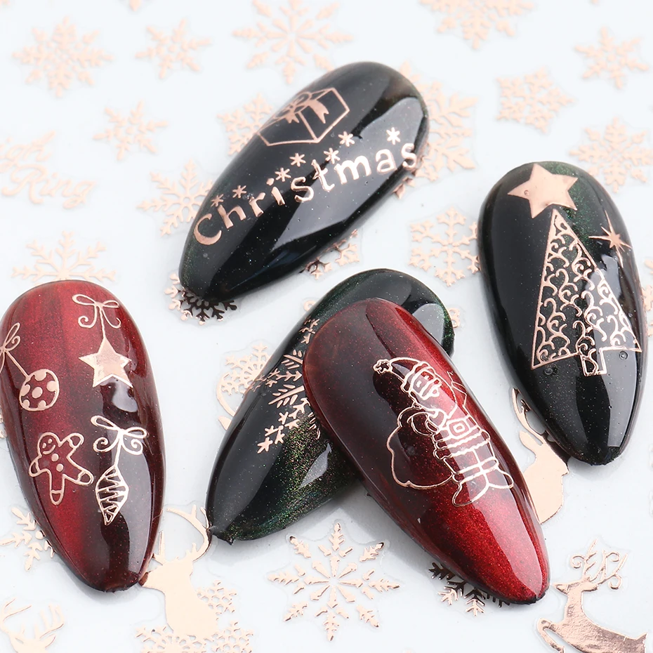 Голографические блестящие Рождественские 3D наклейки для ногтей
