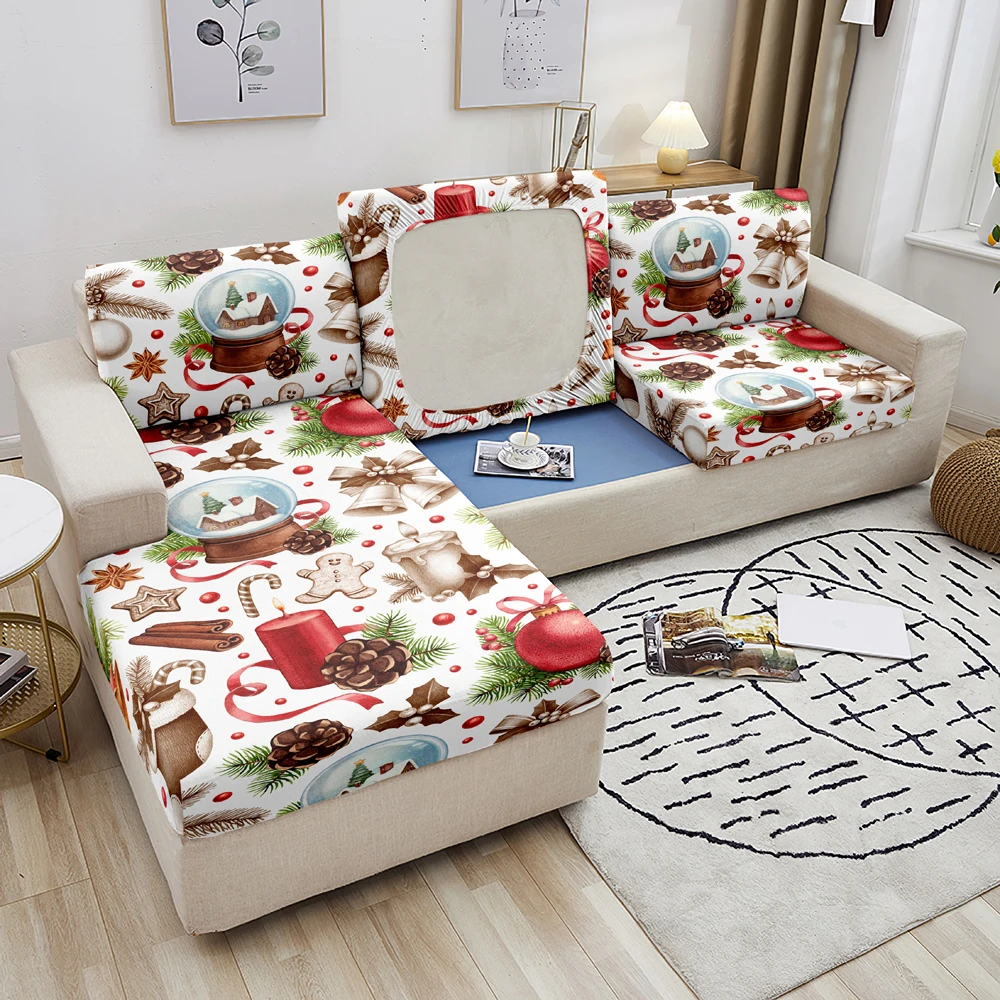 Рождественский эластичный чехол для диванной подушки, с рисунком деда мороза, эластичный чехол для диванной подушки