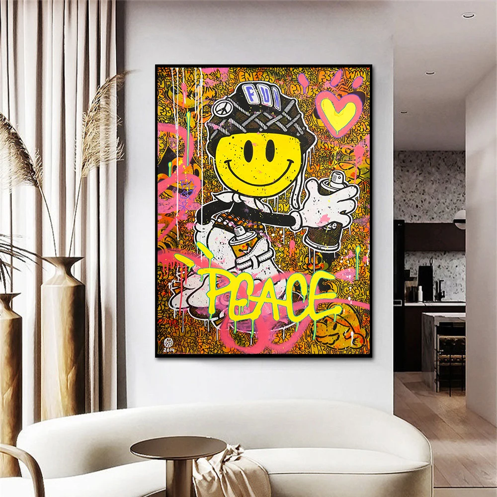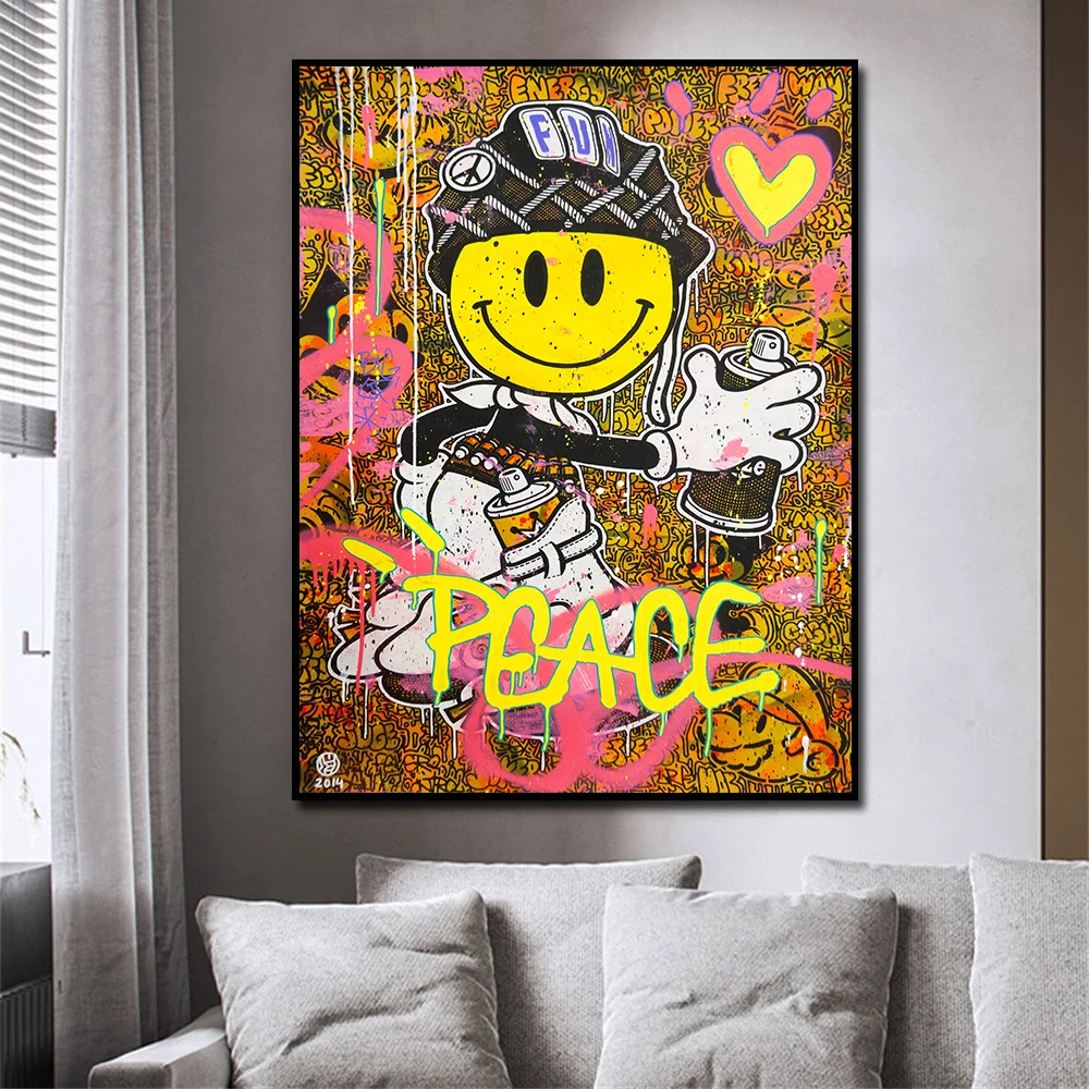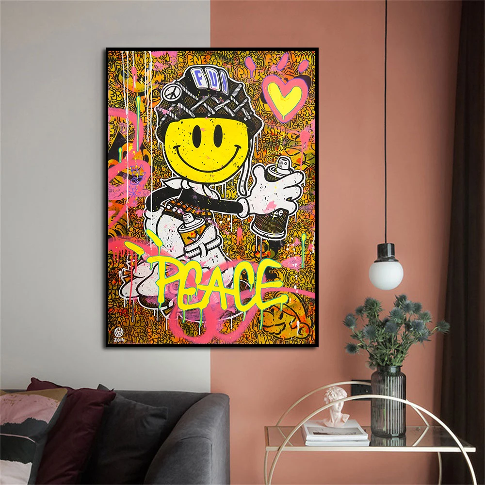 Граффити улица поп-арт улыбающийся мир розовый постер на холсте картина Современная печать Настенная картина для гостиной украшение для дома