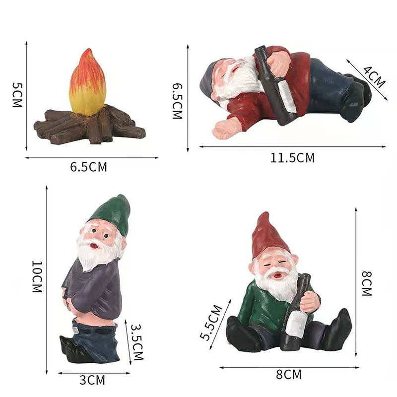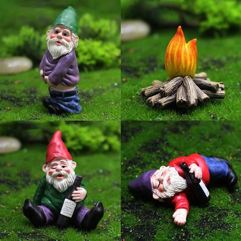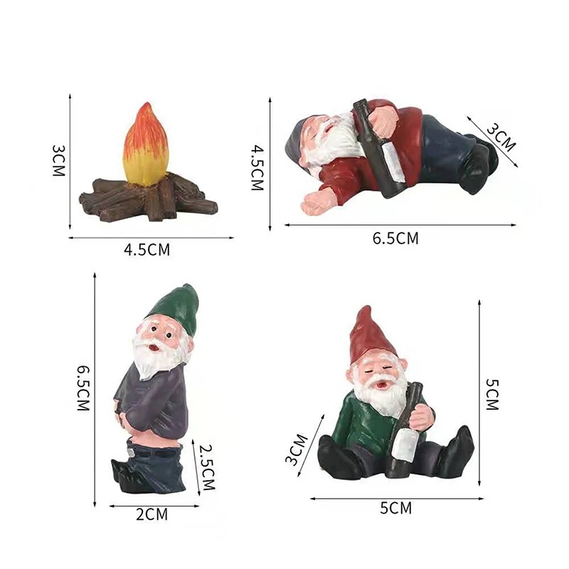 4 шт. мини карликовые костра статуэтки садовые пьяные гномы миниатюрные украшения набор для горшка Цветочный горшок декоративные аксессуары