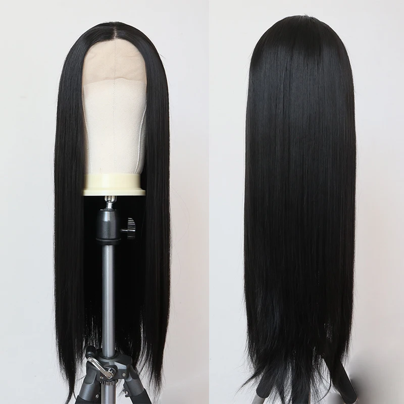Парик из длинных прямых мягких волос, синтетический парик фронта шнурка для женщин, гладкие парики, черные синтетические парики для косплея, для макияжа, париков