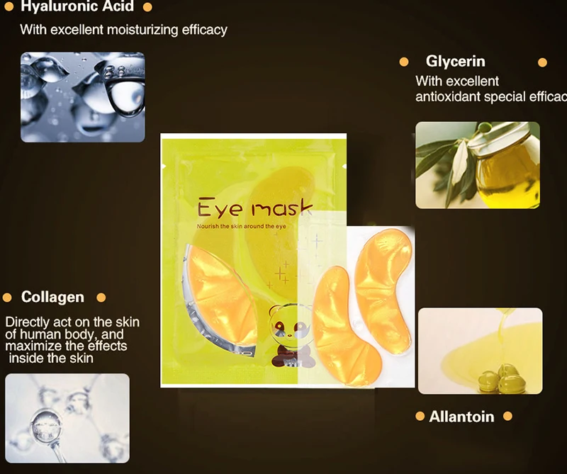 5) четыре основных компонента золотой маски для глаз, глицерин, полидиметилсилоксан, длинная фасоль десен. Коллагеновая Маска не содержит слизи и не содержит. Питательные вещества уплотняются внутри маски, быстро проникают в кожу и чувствуют себя как подтягивающие и укрепляющие, как кожа.