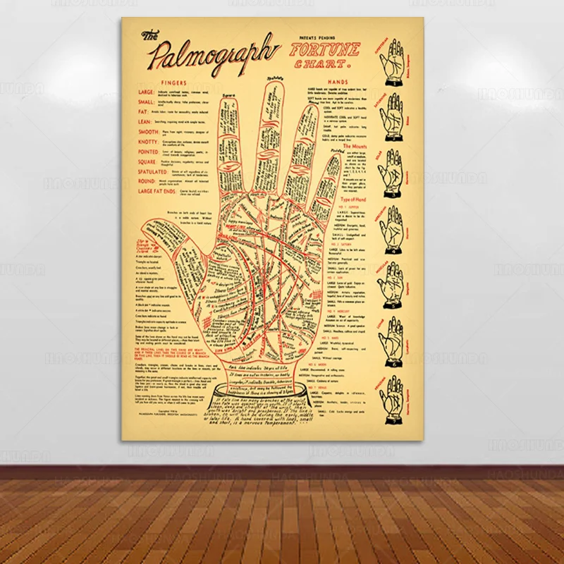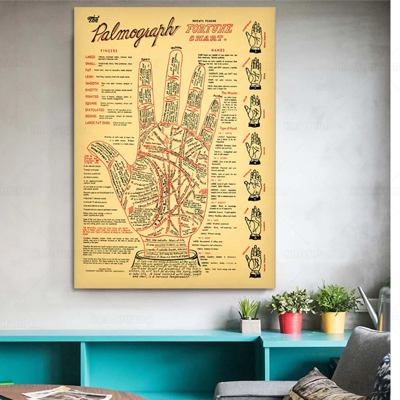 Пальмовые принты для чтения, античная палитра, предмет удачи, телефонная карта, искусство, картина, оккультный декор, плакат