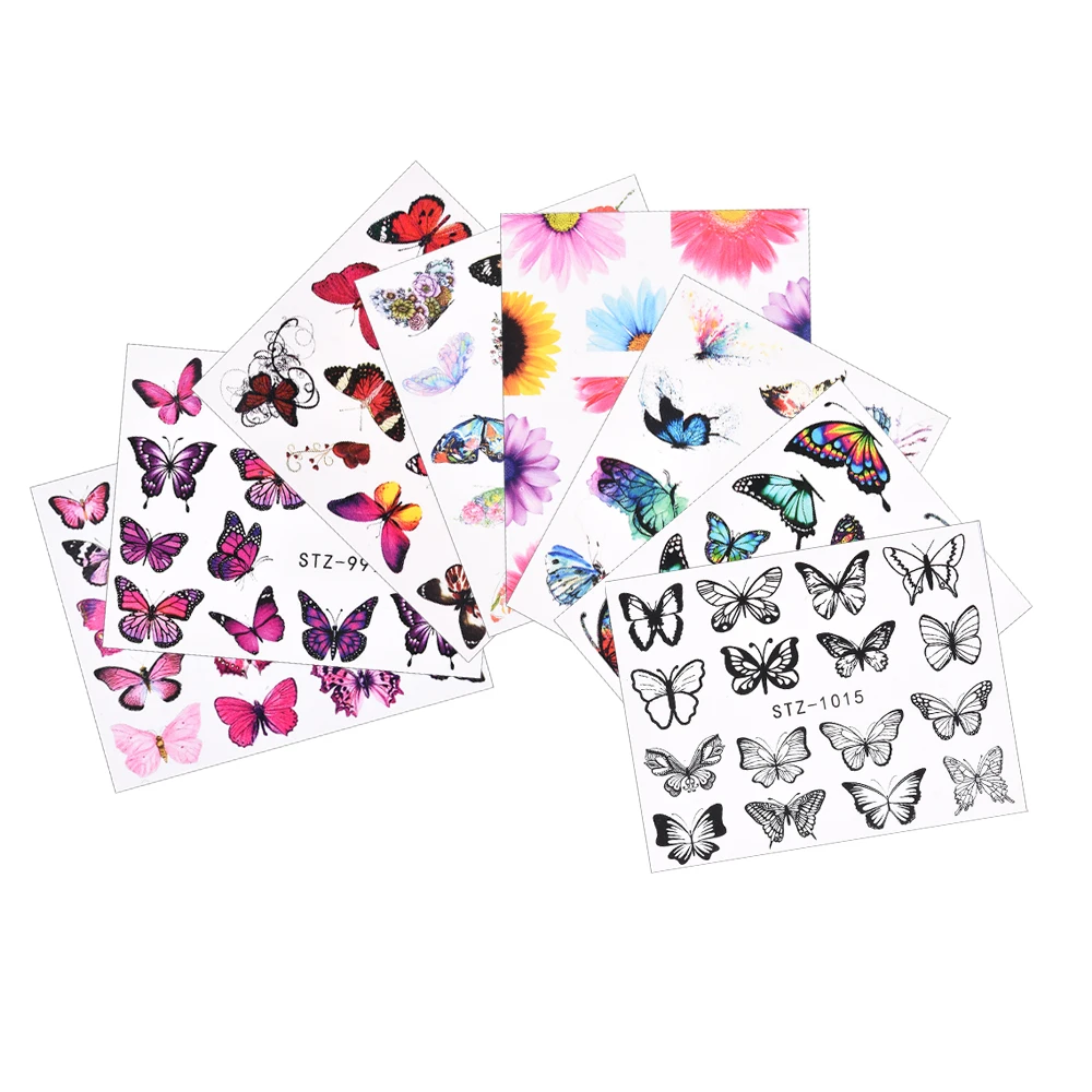 1 шт. весенне-летняя серия розовые фиолетовые бабочки маникюрные наклейки Переводные картинки 3D цветы тема дизайн ногтей слайдер украшение