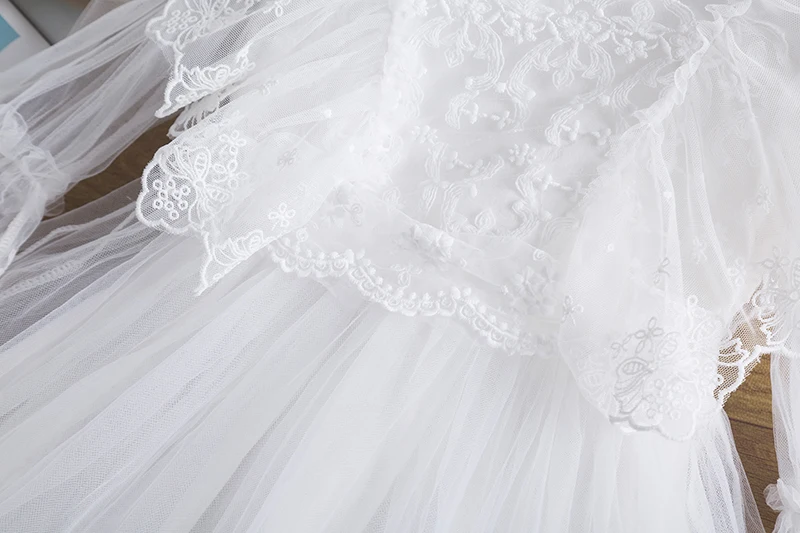 Платье-пачка детское кружевное, белое, с цветочным принтом, От 1 до 5 лет