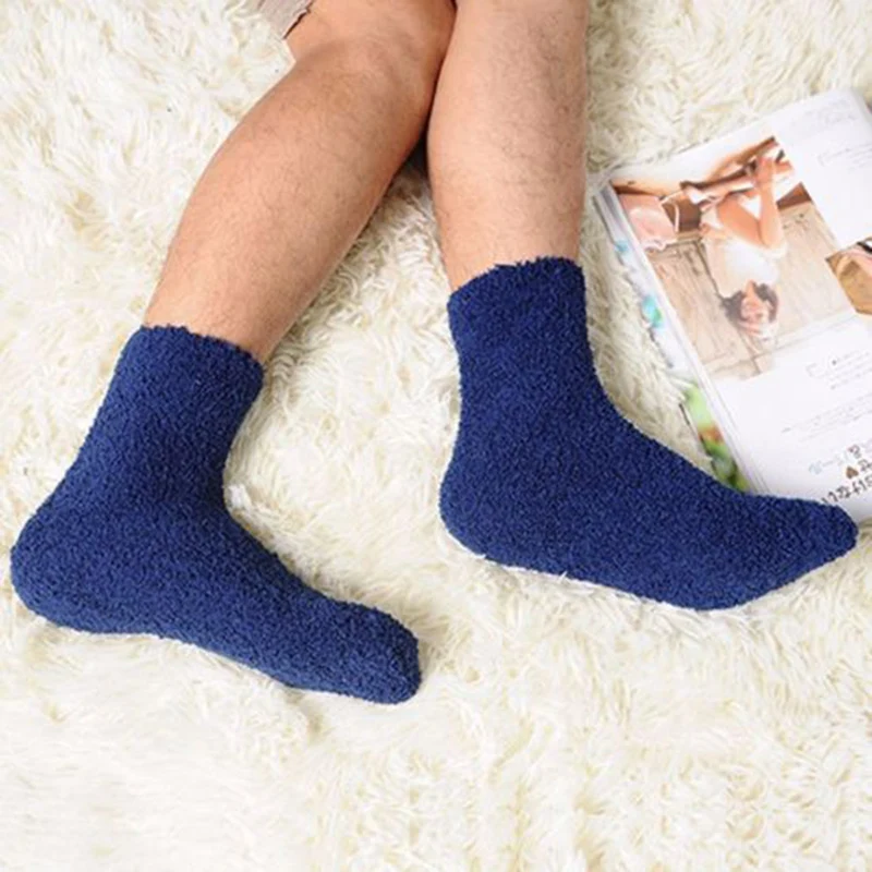 Мужские зимние теплые пушистые носки, однотонные мягкие эластичные ...