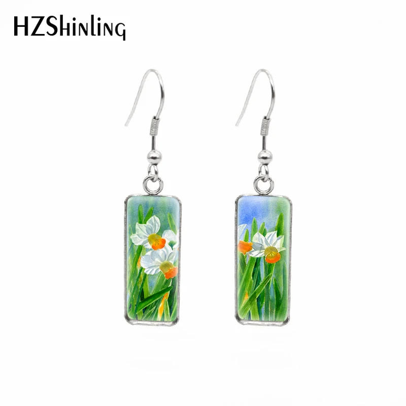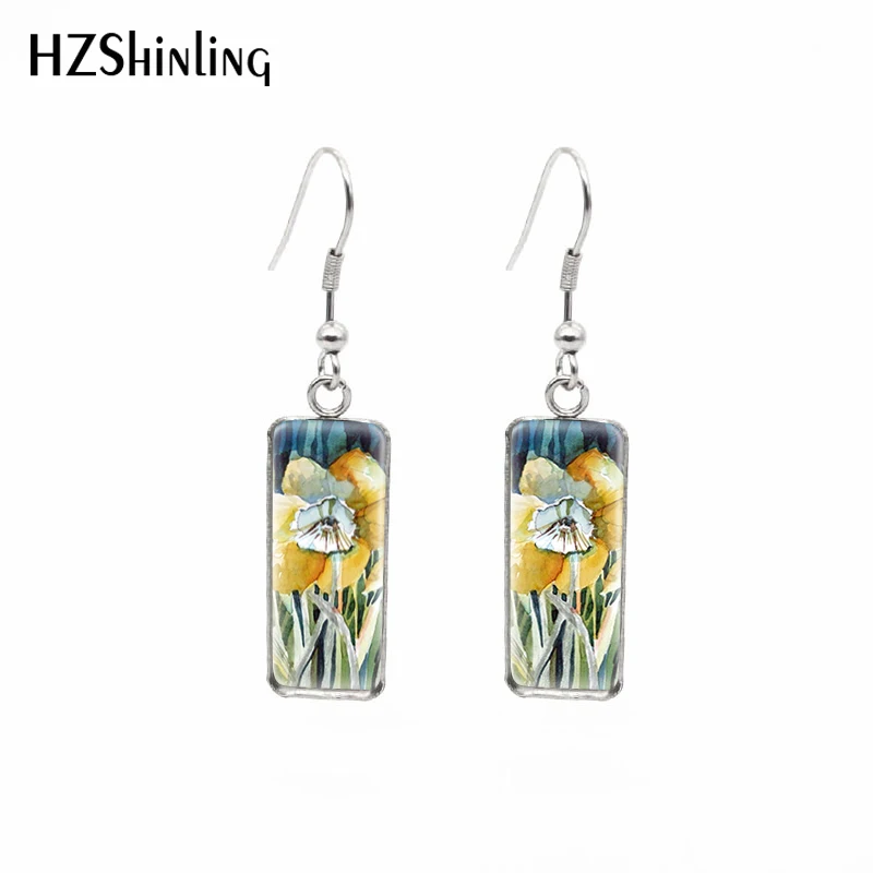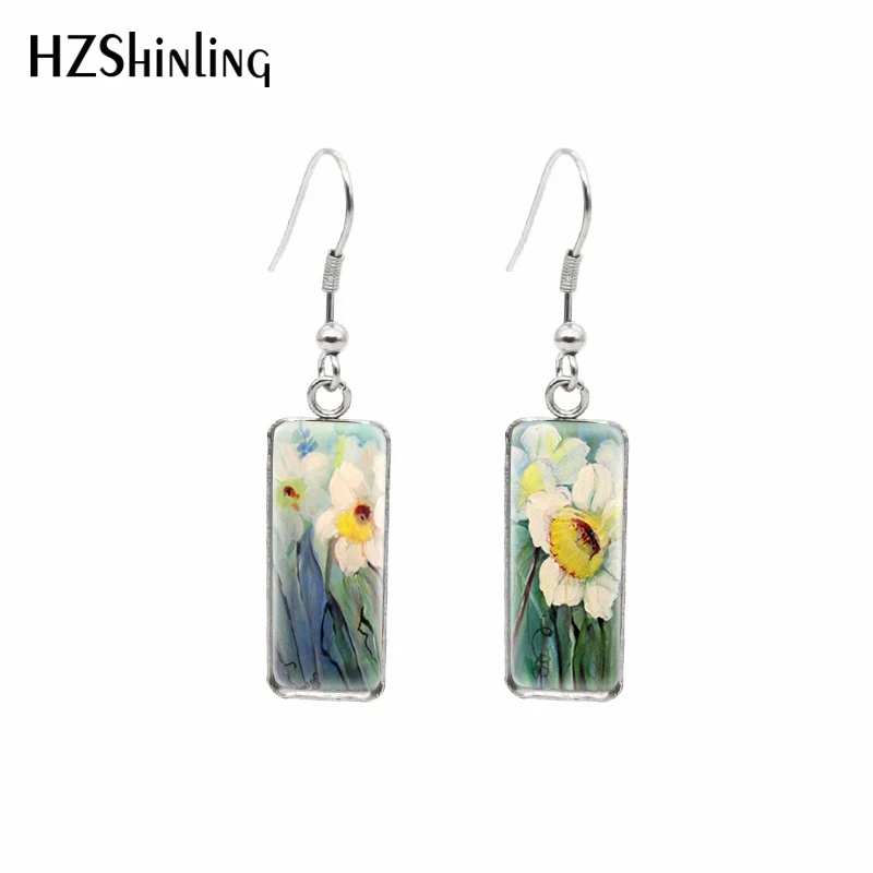 Новинка 2021, весенние прямоугольные серьги-кабошоны в виде крючка с абстрактной живописью, серьги ручной работы со стеклянным кабошоном