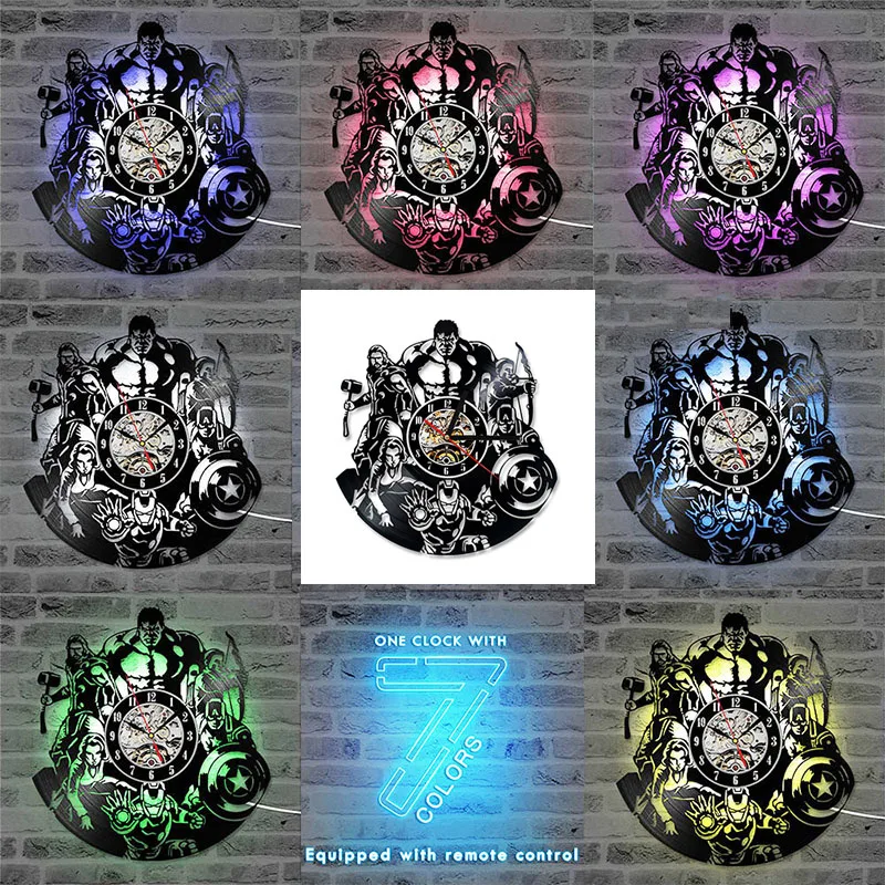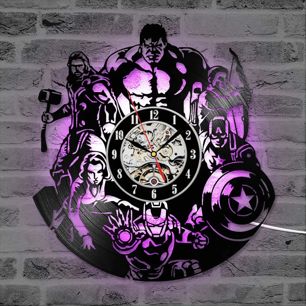 Виниловые настенные часы в виде супергероев с CD-диском, винтажные часы Avenger с виниловым альбомом и записью, бесшумные часы для декора комиксов, подарок для детей