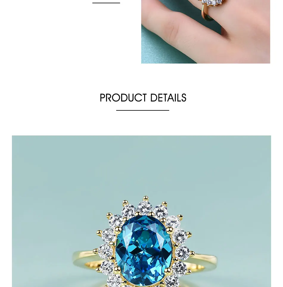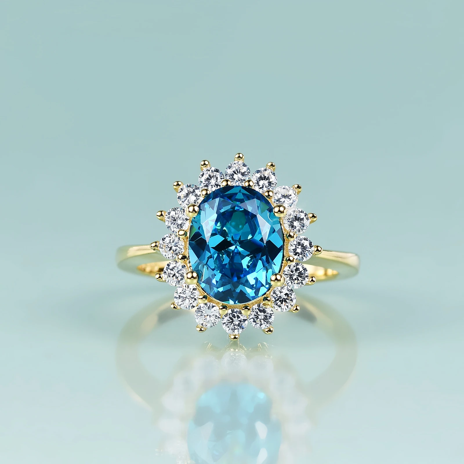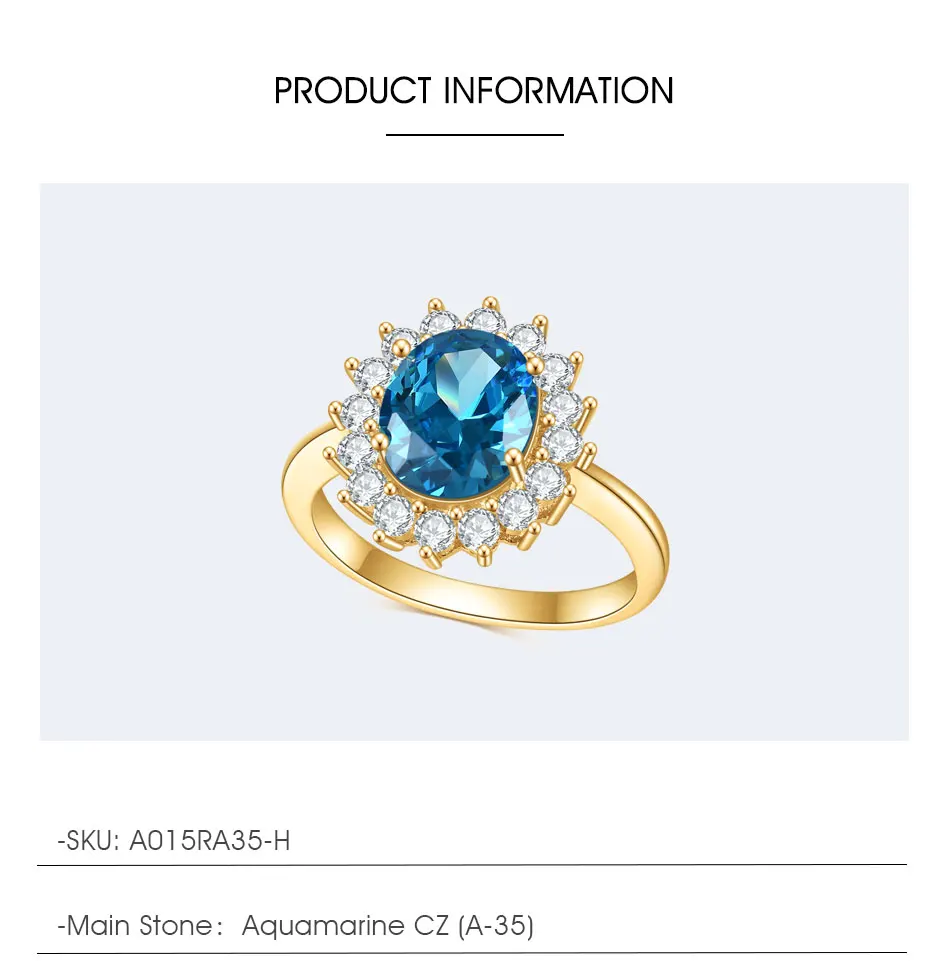 Красота драгоценного камня 10K 14K Золотое кольцо соответствующим месяцу рождения Серебряная лаборатория Аквамарин кольца Принцесса Диана вдохновленное эффектное обручальное кольцо