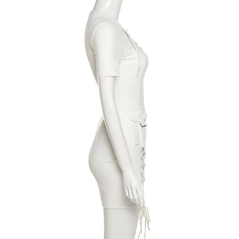 Платье-мини с коротким рукавом, на шнуровке, с карманами