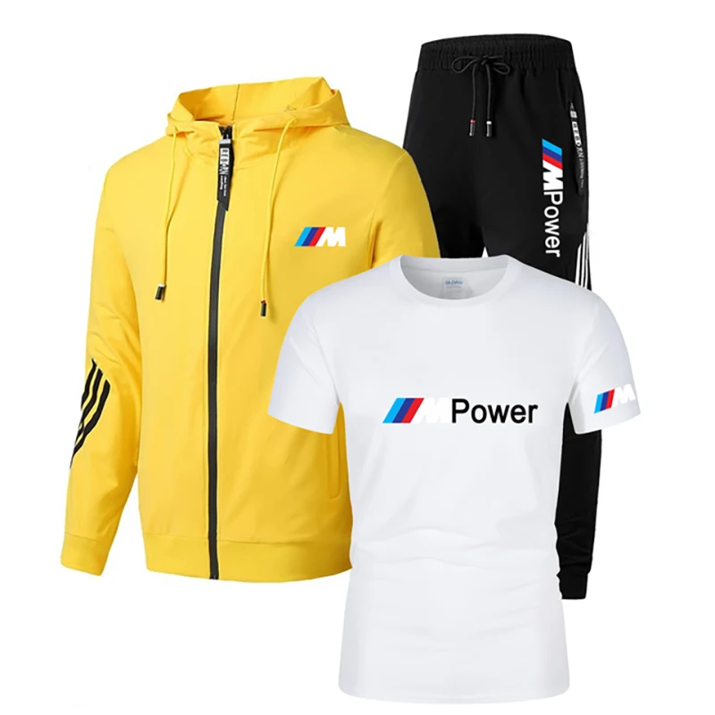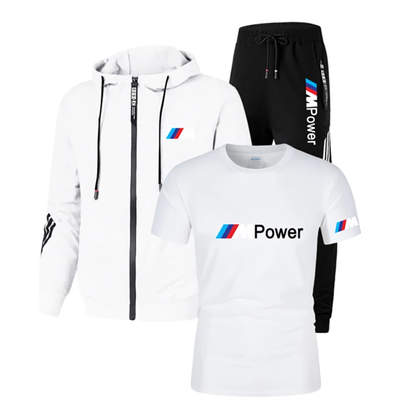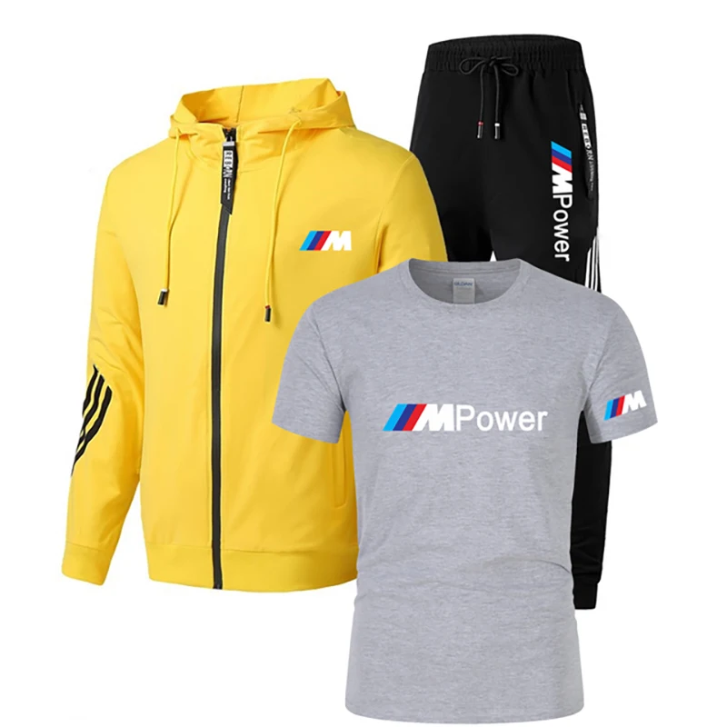 Новинка 2021, мужская повседневная спортивная одежда BMW M, толстовка, весенний тонкий костюм на молнии + футболка, костюм-тройка для фитнеса и бега