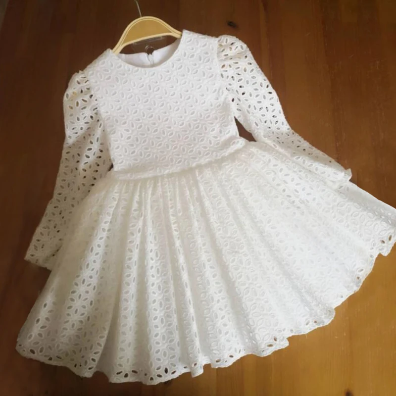 Красные белые платья для девочек, зимние платья с длинным рукавом для маленьких девочек, детская хлопковая кружевная одежда, повседневные платья для детей