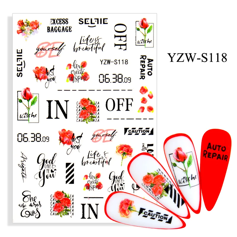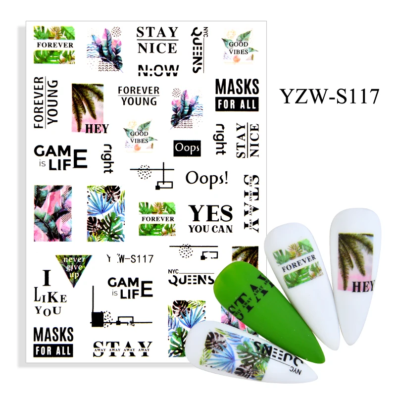 Наклейки для ногтей с буквами, цветами, растениями, лицевыми узорам...