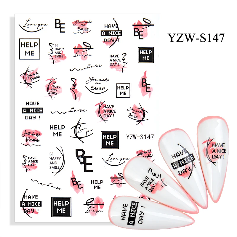 16 надписей, наклейка для ногтей, английские слова, буквы, предложение, дизайнерские украшения для ногтевого дизайна, маникюрные дизайнерские наклейки для ногтей