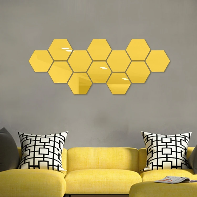 12 шт., декоративные настенные зеркала, золотистыеСеребристые