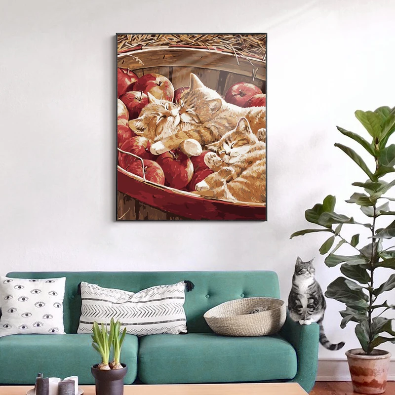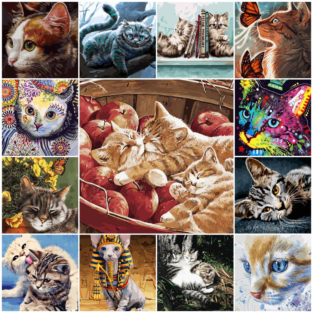 картина по номерам на холсте кошка рисуй сам три кошки хобби рисование по номерам кошки Картина маслом сделай сам, 40x50 живопись по номерам 24 цвета подрамники и безрамники отправить груз из россии закупать в москве