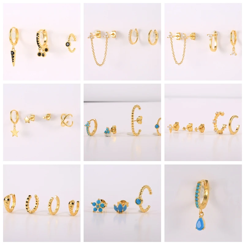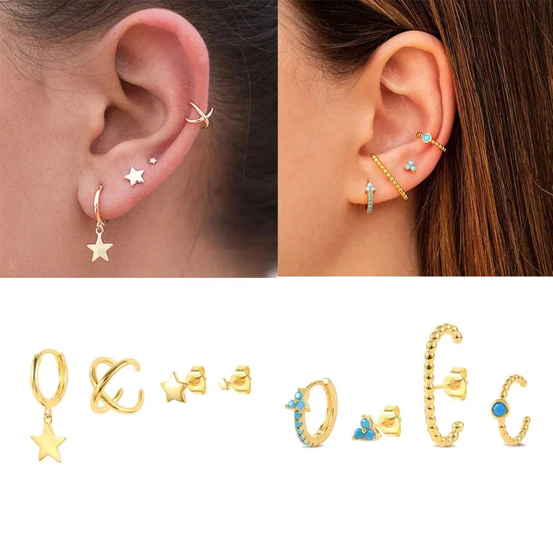 3/4/5 шт 925 серебряные серьги набор синяя Бирюзовая Корона Серьги гвоздики подвеска Звезда Луна висячие серьги черный циркон змея клипсы