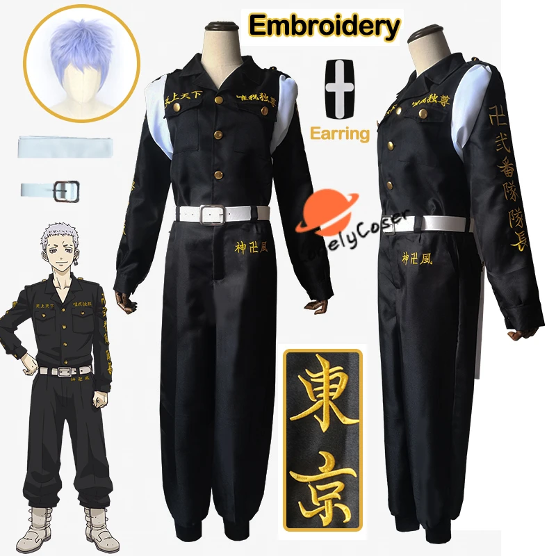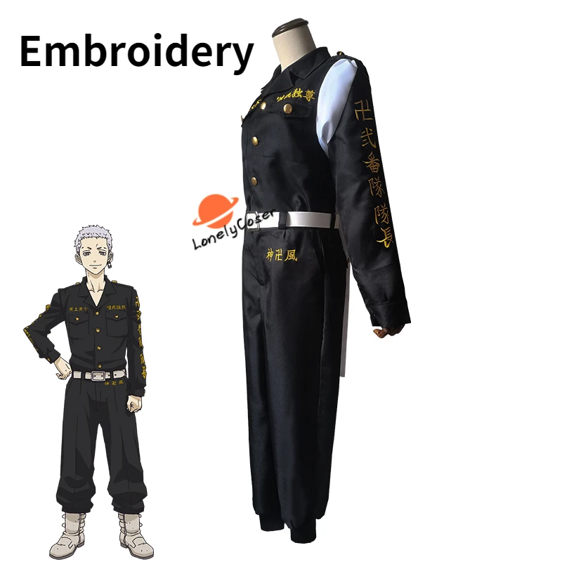 Костюм для косплея аниме Токийский ремни Такаси мицуя, черная Униформа с вышивкой, пояс с париком, для вечевечерние НКИ на Хэллоуин