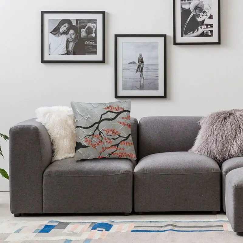Наволочка Сакура с красным и серебряным цветком вишни, 45x45 см, домашний декор, 3D Цветы, цветочный узор, декоративная подушка, чехол для автомобиля