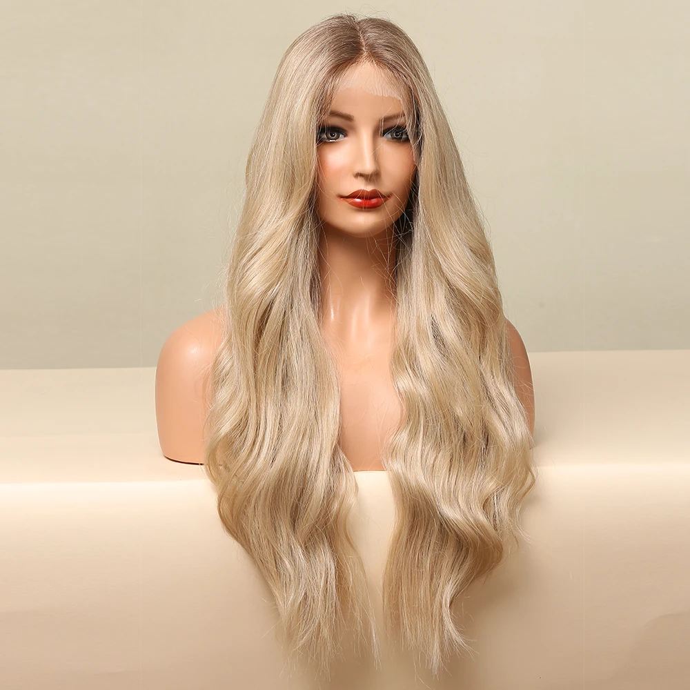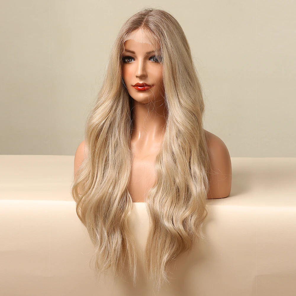 Длинные волнистые синтетические парики GEMMA на сетке, коричневые светлые парики с эффектом омбре спереди на сетке для женщин, натуральные средней части, косплей, повседневные, Лолита волосы