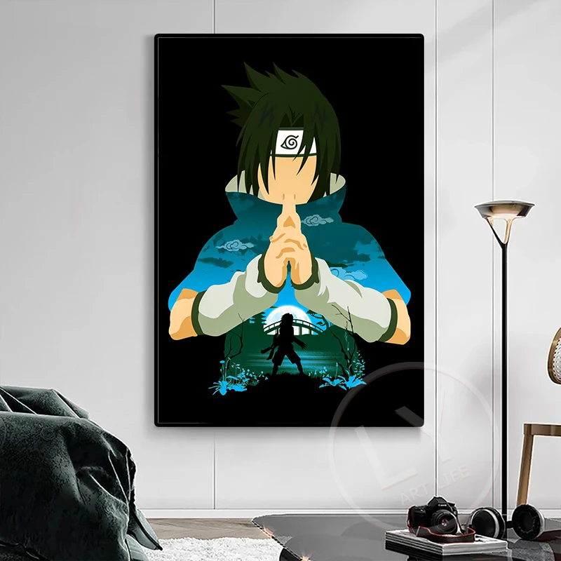Новейший плакат с силуэтом Аниме Наруто, принты Итачи Учиха Саске, абстрактная настенная Картина на холсте, Настенная роспись для современного домашнего декора