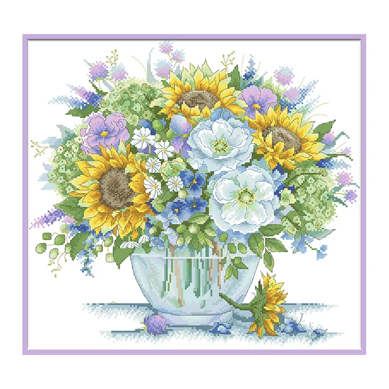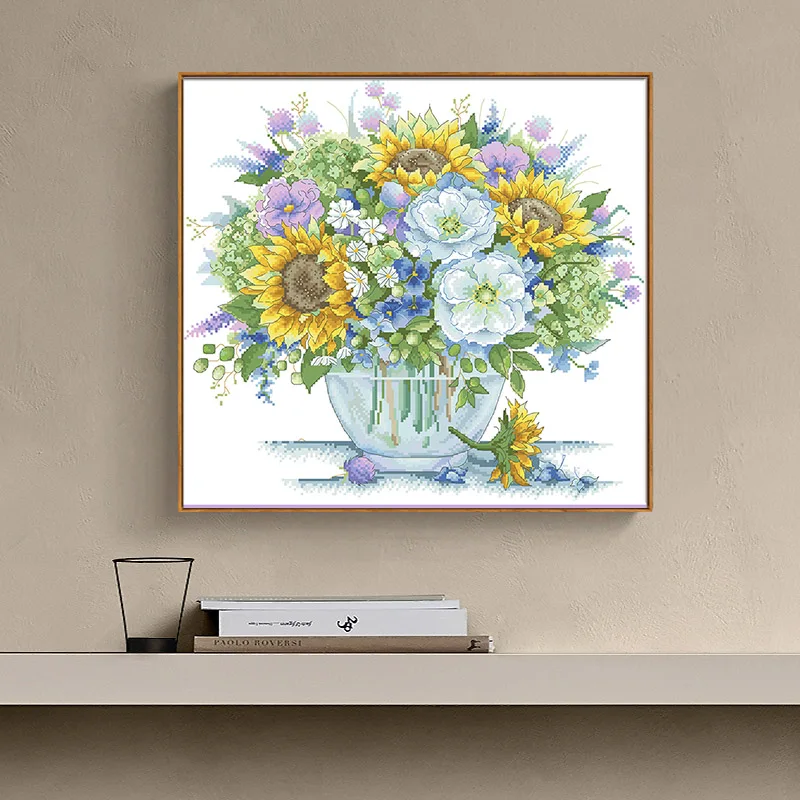 Ваза с подсолнухом пустые Наборы для вышивания крестиком без принта Наборы для вышивания на холсте 11CT 14CT поделки ручной работы для украшения дома