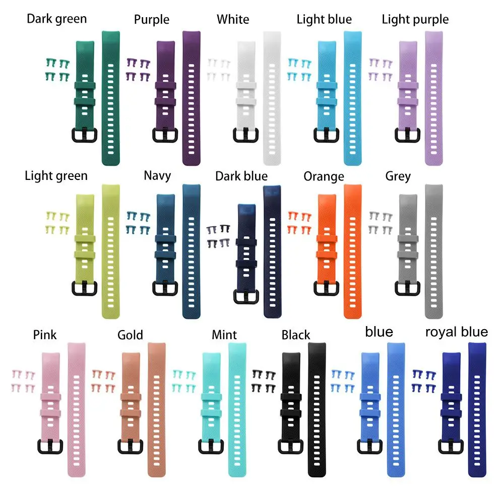 Предназначен как сменный ремешок для Honor Band 4.Легко чистить, не нужно беспокоиться о выцветании.Подходит как для мужчин, так и для женщин во время занятий спортом, свиданийРегулируемый дизайн часов, размер может быть скорректирован в зависимости от обстоятельств индивидуального запястья, подходит для мужчин, женщин.Легкий и удобный, приносит удобный опыт во время физических упражнений, сна и за его пределами.Материал: силиконСовместим с Honor Band 4Цвет: темно-зеленый, фиолетовый, белый, светло-голубой, светло-фиолетовый, светло-зеленый, темно-синий, темно-синий, оранжевый, серый, розовый, золотой, мятный, черный, синий, королевский синийДлина: около 75 мм + 125 мм