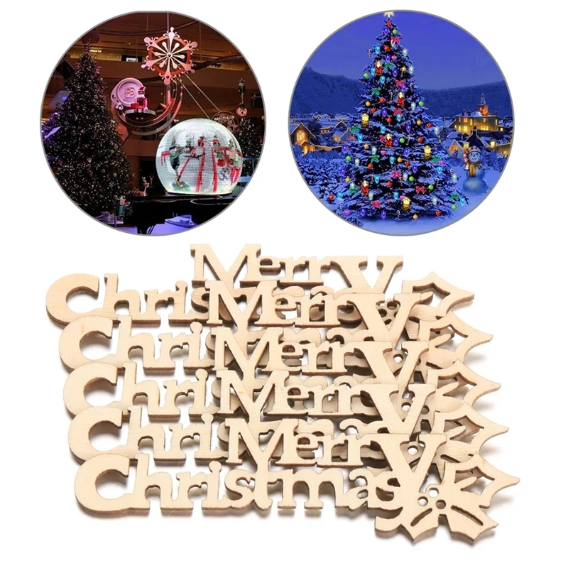 10/30 шт деревянной стене висит украшение кулон с Рождеством письма поделки РОЖДЕСТВЕНСКИЕ вечерние домашний декор DIY Лазерная Резка деревянных ломтик