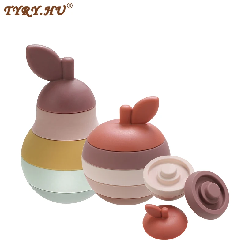 TYRY.HU 5 шт.компл. силиконовый строительный блок детский силиконовый Прорезыватель Яблоко Груша мягкий блок Обучающие игрушки Монтессори штабелируемые блоки