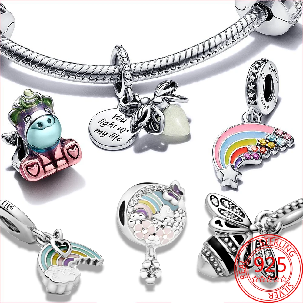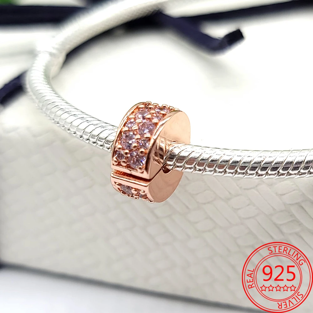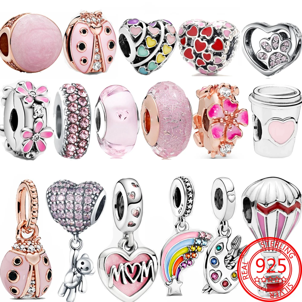 Великолепные подвески из стерлингового серебра 925 пробы, подходят для браслетов и ожерелий Pandora с розовым сердцем, подарок для девушки, ювелирные изделия сделай сам