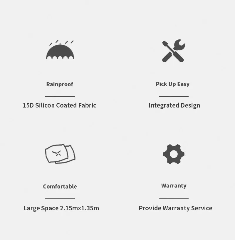 Аксессуары: внешняя палатка * 1 + Внутренняя палатка * 1 + напольный коврик * 1 + шатер * 1 + ветряная веревка * 4 + гвоздь для заземления * 12 + Корпус для ремонта * 1 + пластырь для горячей посадки * 2
