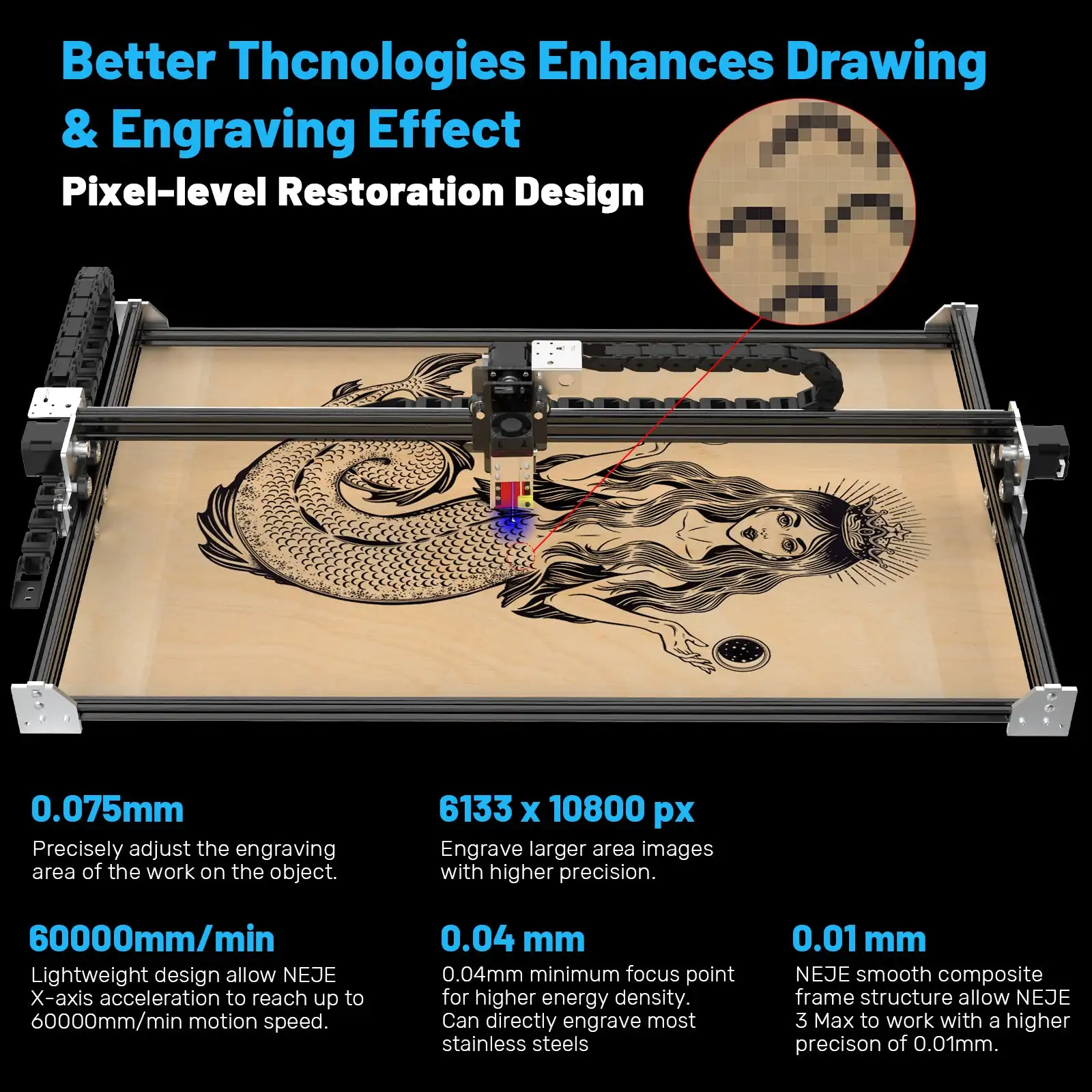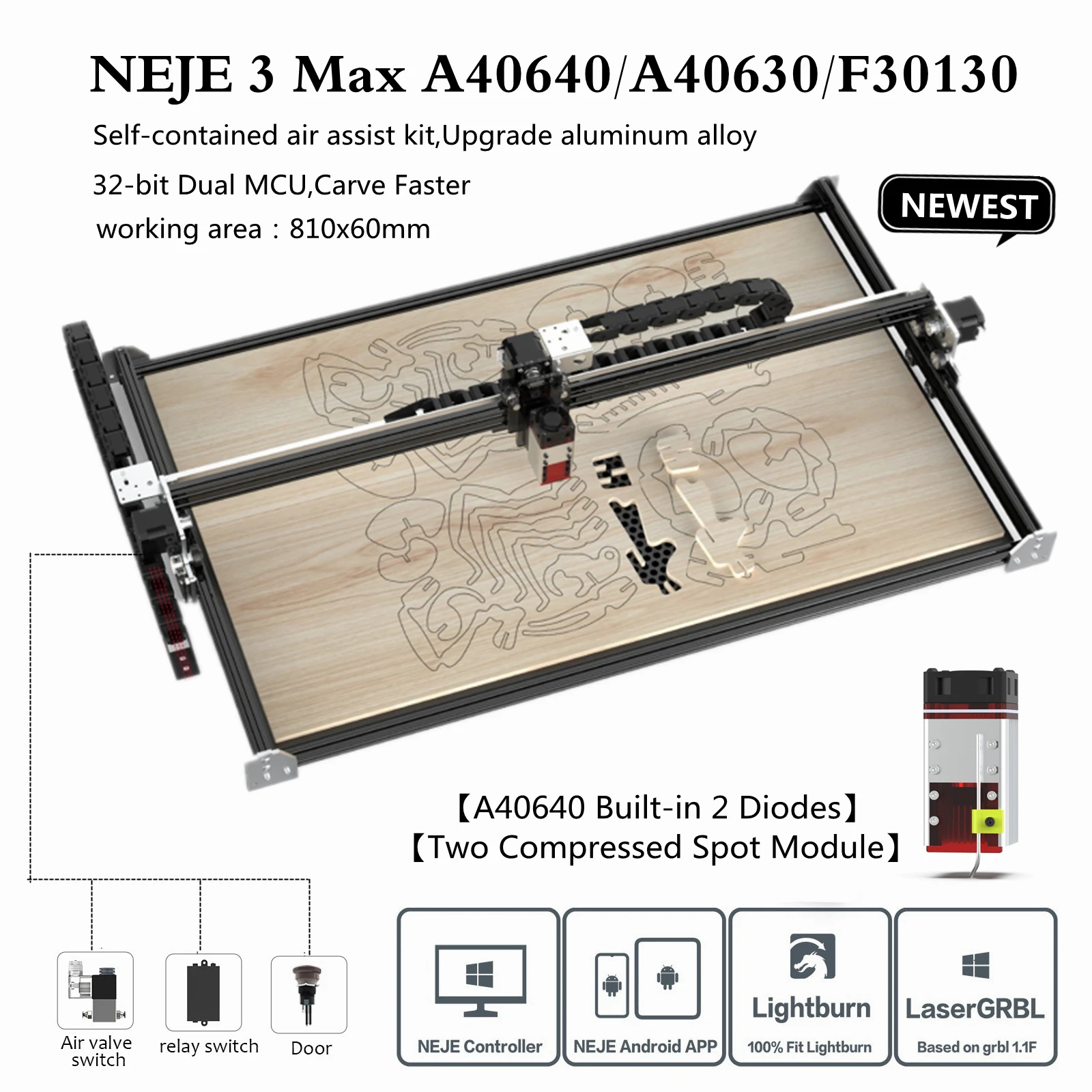 Лазерный гравер NEJE 3 Max A40640F30130N40630 с ЧПУ, лазерный гравировальный станок для резки древесины, лазерный гравировальный принтер Lightburn GRBL с Bluetooth