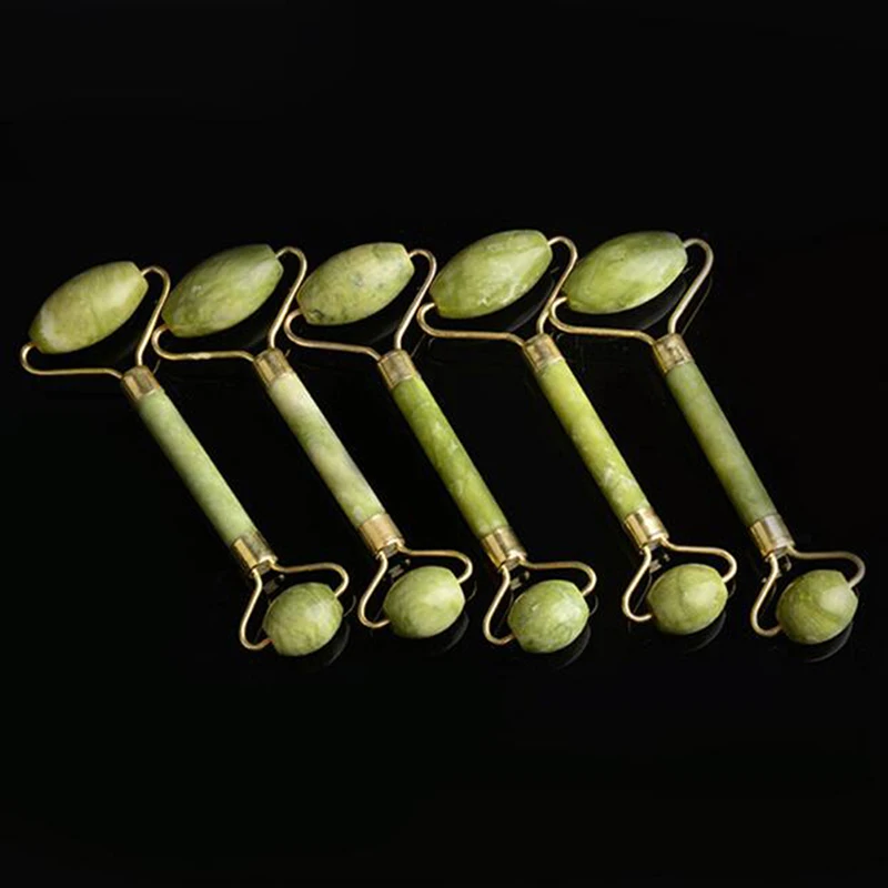 Один кусок для красоты лица двойная головка зеленый нефритовый ролик эллиптический массажер для глаз лица шеи лица похудение тонкий инструмент для ухода за здоровьем