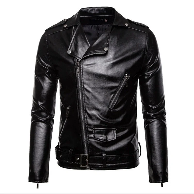 Мужская куртка из искусственной кожи, повседневная приталенная курт...