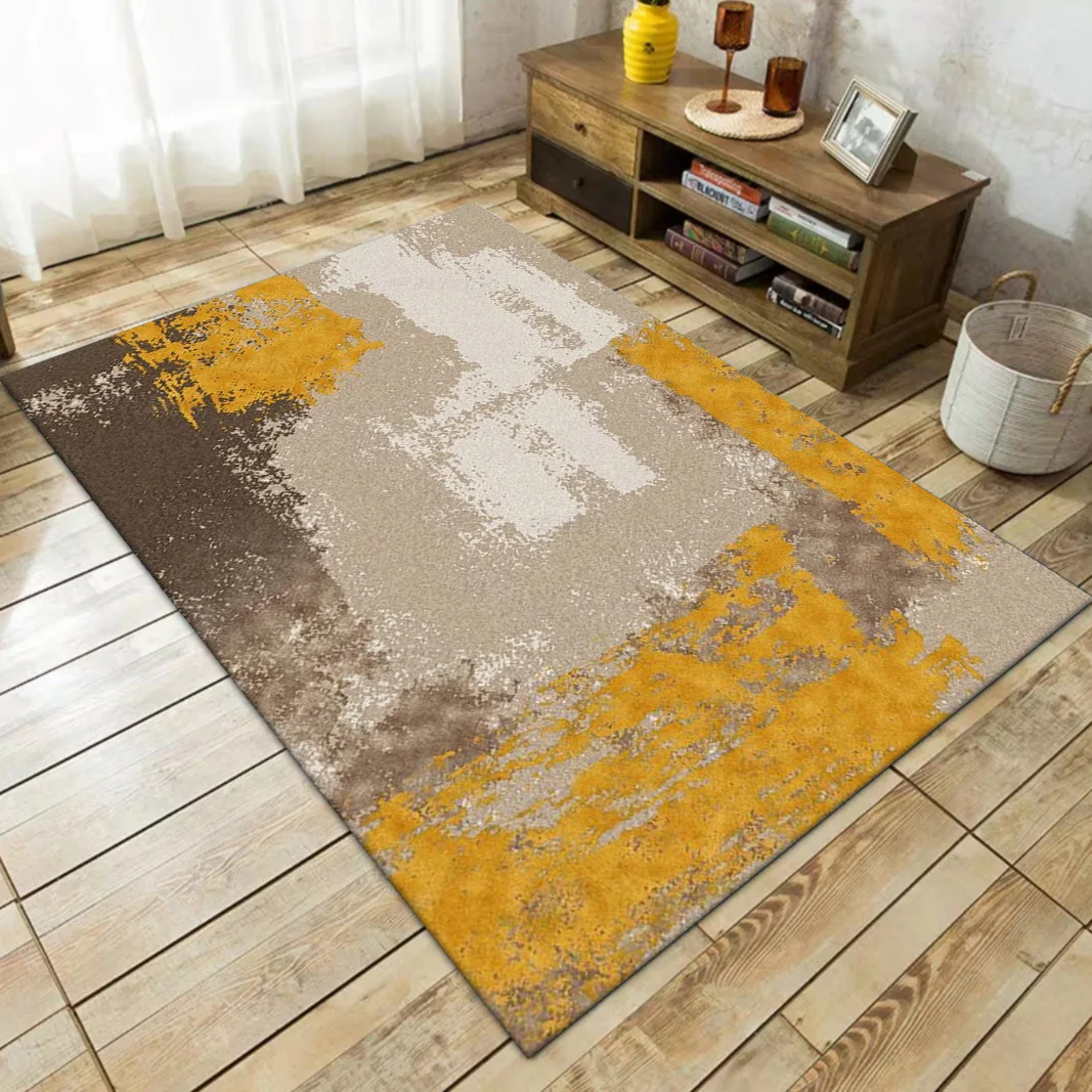 Коврик для спальни, с абстрактным чернильным рисунком, желтого и коричневого цветов